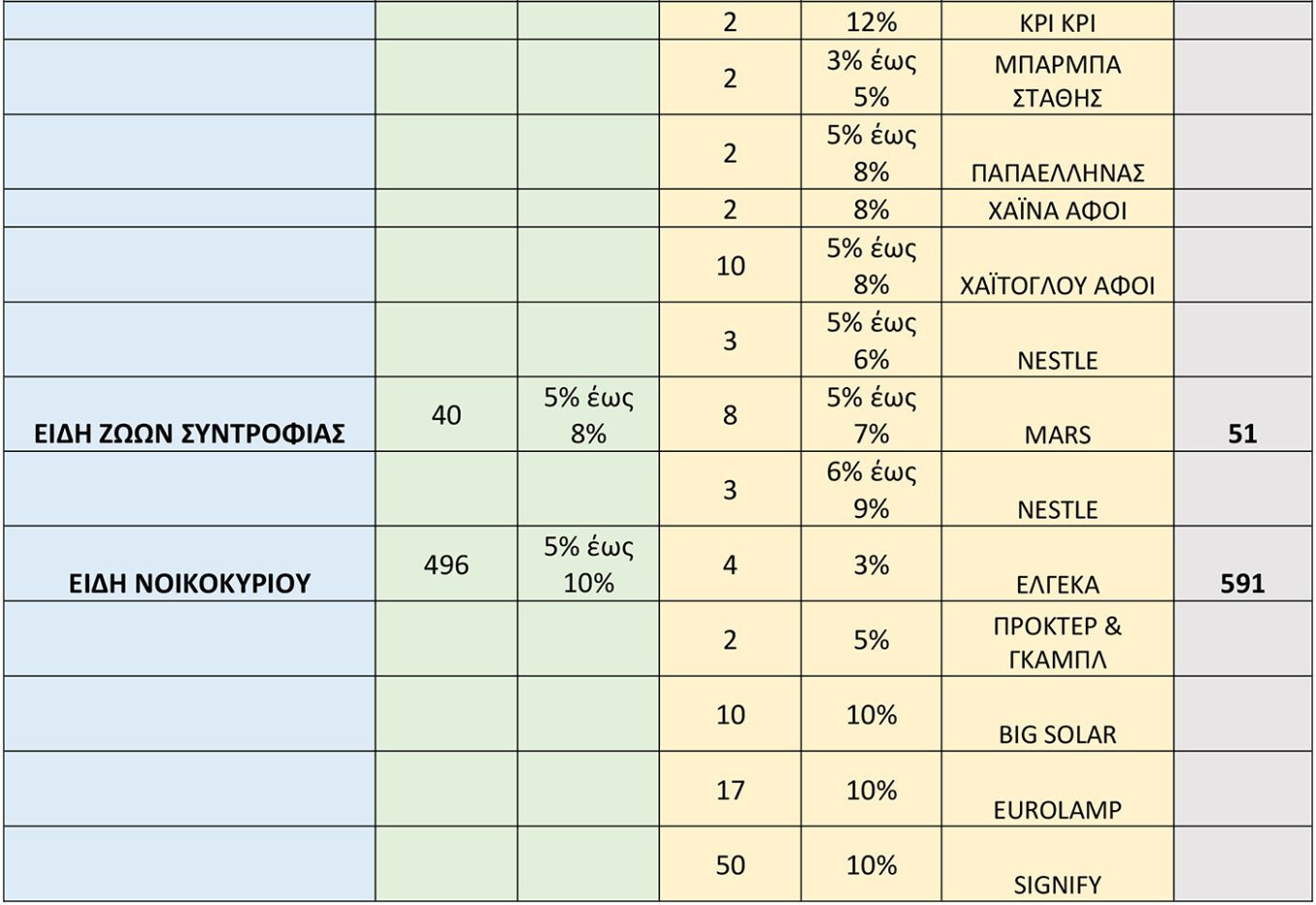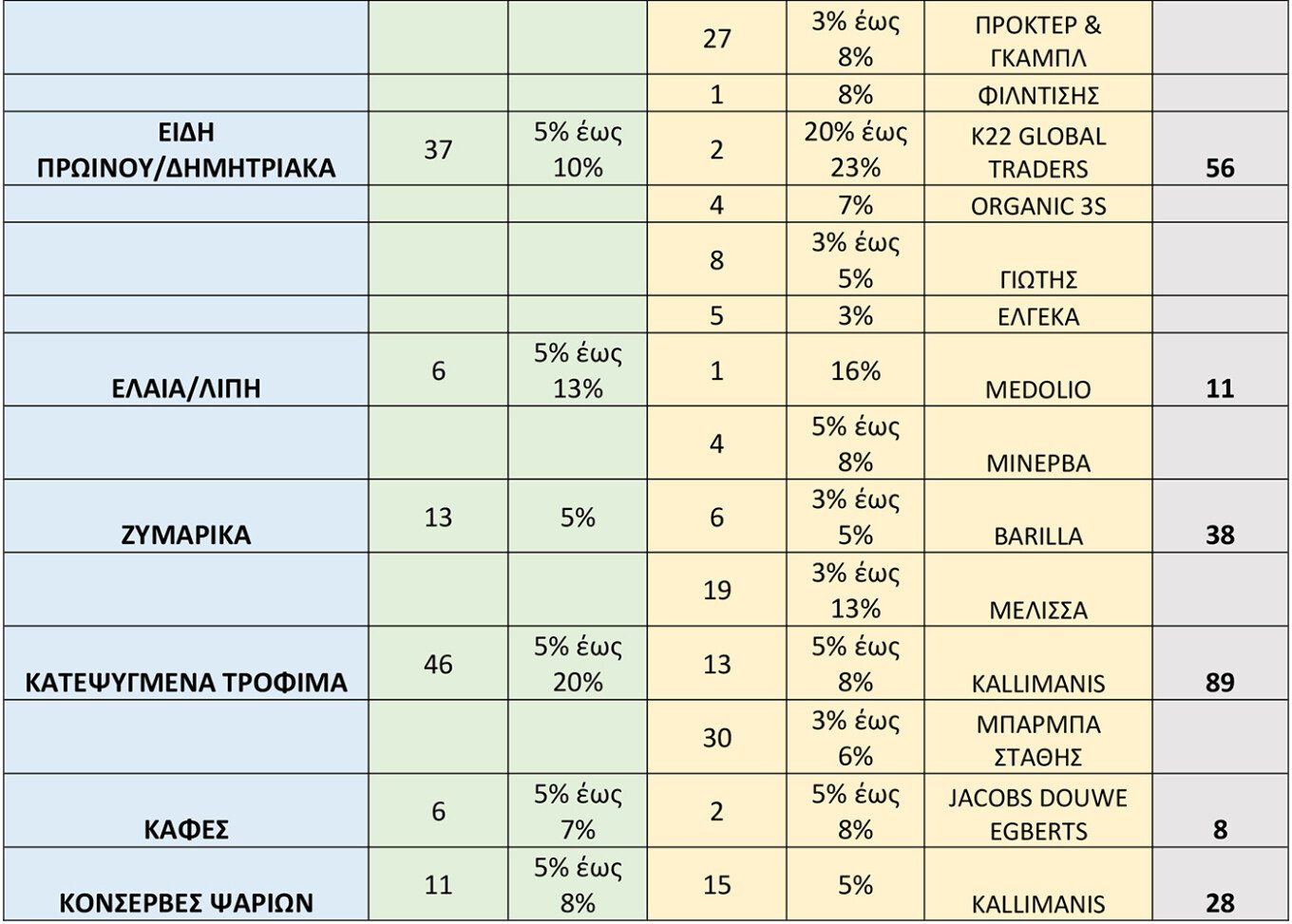 Όπως έκανε γνωστό το υπουργείο Ανάπτυξης, πρόκειται για 1.074 κωδικούς που αφορούν τρόφιμα και 1.106 κωδικούς από άλλες κατηγορίες προϊόντων, με τον συνολικό αριθμό να ξεπερνά «σημαντικά» τον αρχικό στόχο, όπως σημειώνεται στη σχετική ανακοίνωση.