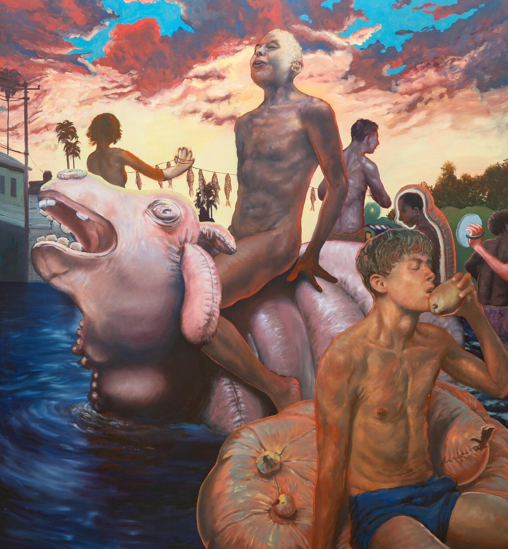 Ο τίτλος της έκθεσης επικαλείται την αθωότητα του αρκαδικού ιδεώδους και την αρμονική συνύπαρξη με τη φύση. Χωρίς το βάρος προκαθορισμένων θεμάτων ή αφηγηματικών στοιχείων, οι ζωηρές αυτές αφαιρέσεις προσκαλούν τον θεατή σε μια ενισχυμένη εμπειρία χρώματος και αισθητηριακής αντίληψης. Ο Stanley Whitney αναδεικνύει τη δύναμη του χρώματος μέσα από χαλαρά πλέγματα με αδρά ορθογώνια σχήματα, δημιουργώντας συνθέσεις τριών ή τεσσάρων σειρών, χωρισμένων από οριζόντιες ζώνες που διατρέχουν τον καμβά.