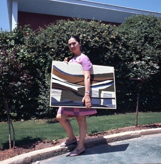 Η Julia Logothetis και φίλη της μέσα σε έργα του Στάθη Λογοθέτη, περ.1975-1980.