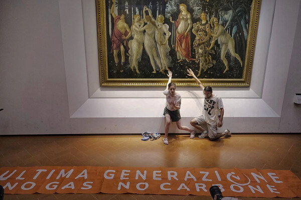 Περιβαλλοντικοί ακτιβιστές κόλλησαν τους εαυτούς τους στον πίνακα «Primavera» του Σάντρο Μποτιτσέλι, ο οποίος εκτίθεται στην γκαλερί Ουφίτσι στη Φλωρεντία.