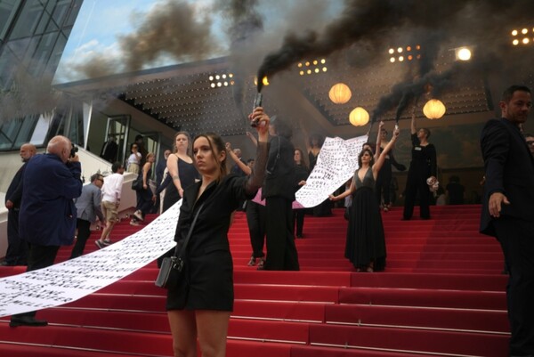 Ομάδα ακτιβιστριών εμφανίστηκε στο Φεστιβάλ των Καννών με καπνογόνα στα χέρια και ξεδίπλωσαν ένα ένα τεράστιο πανό, τιμώντας θύματα γυναικοκτονιών.