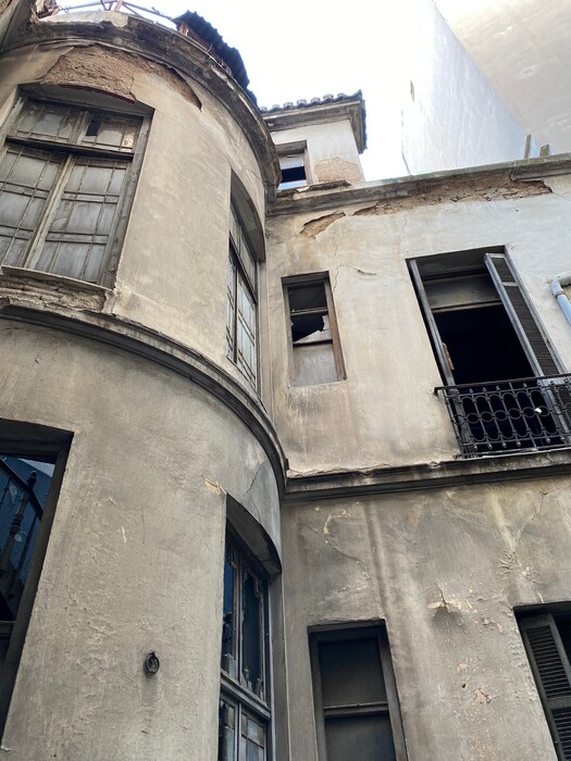 «Το νεοκλασικό της οδού Σταδίου 47, εξαιτίας της μετατροπής του σε εμπορικό κατάστημα, παρουσίασε σοβαρά στατικά προβλήματα, ήδη εδώ και δεκαετίες, γι’ αυτό και σταδιακά εγκαταλείφθηκε κάθε χρήση του, το 2012. Ο σεισμός του 2018 και η πυρκαγιά του