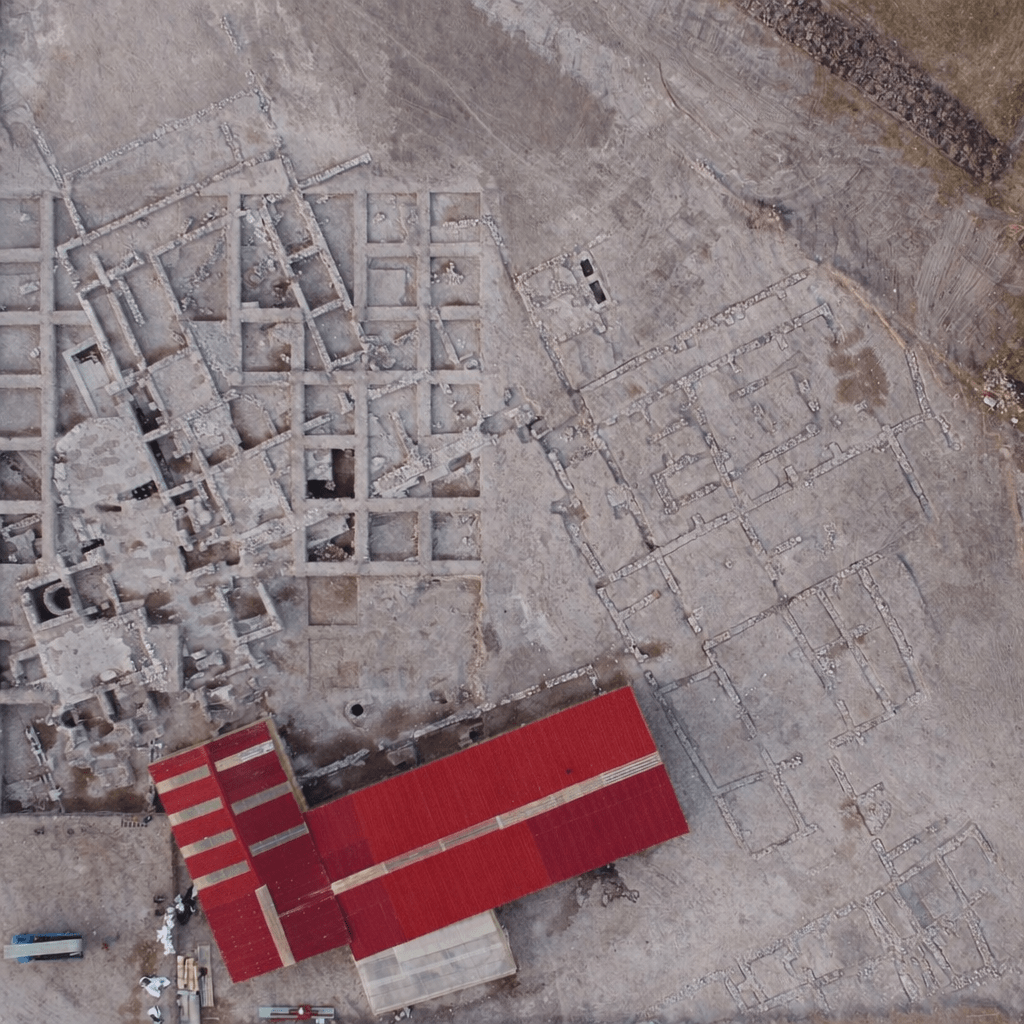 Αεροφωτογραφία της ρωμαϊκής έπαυλης στο Αμύνταιο