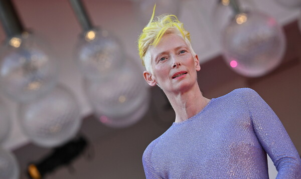 Με ξανθιά neon κόμη και oversized μπλε πουκάμισο η Τίλντα Σουίντον έκλεψε για άλλη μια φορά την παράσταση, εμφανιζόμενη στην 79η Μόστρα για τη νέα της ταινία The Eternal Daughter.