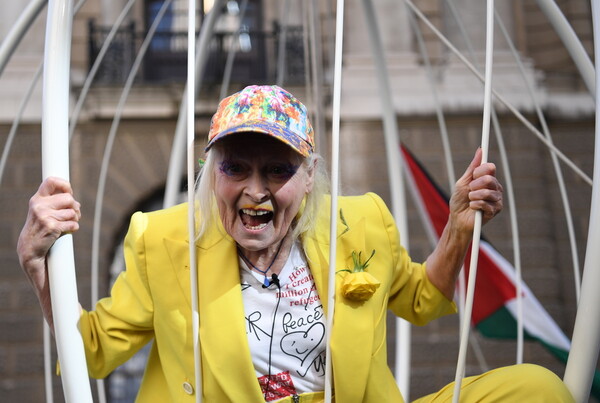 Η Βίβιαν Γουέστγουντ ντύθηκε «καναρίνι» και μέσα από ένα τεράστιο κλουβί, το οποίο βρισκόταν στον αέρα, έξω από το Old Bailey στο Λονδίνο, διαμαρτυρήθηκε κατά της έκδοσης του Τζούλιαν Ασάνζ στις ΗΠΑ.