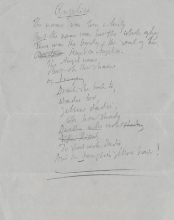 Το άλλο ποίημα που βρέθηκε, με τίτλο «Angelica», αναφέρεται στο όνομα της ανιψιάς της, Αντζέλικα Γκάρνετ, κόρης της Βανέσα Μπελ και του εραστή της Ντάνκαν Γκραντ, η οποία γεννήθηκε το 1918 και έγινε μετέπειτα συγγραφέας και ζωγράφος. Την Αντζέλικα τη μεγάλωσε μαζί με τα άλλα δυο αδέλφια της ο σύζυγος της Βανέσα, διανοούμενος και κριτικός τέχνης Κλάιβ Μπελ, τον οποίο είχε παντρευτεί το 1907.