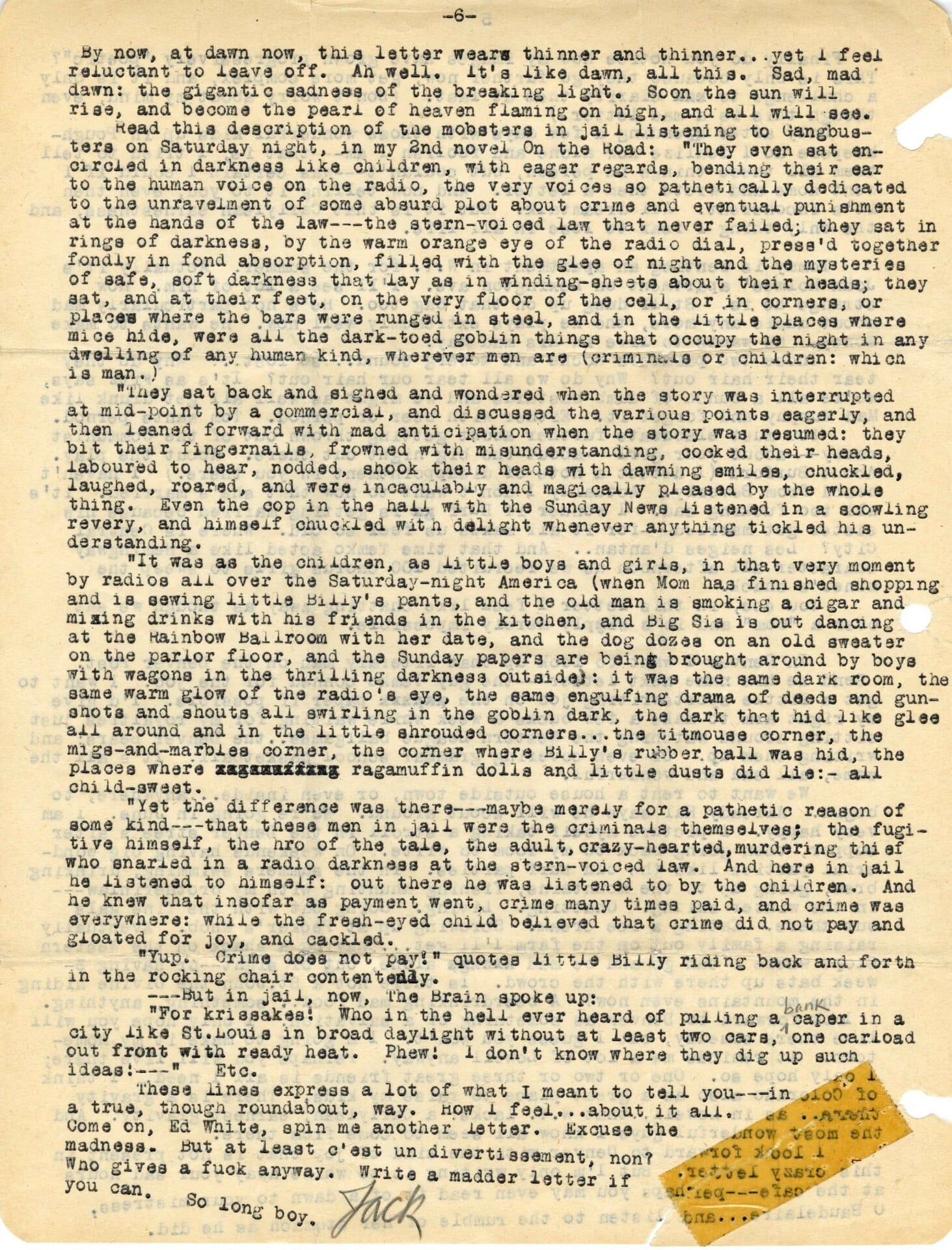 Απόσπασμα από επιστολή του Jack Kerouac προς τον συμφοιτητή του στο Columbia και beat Ed White, το 1949, που αργότερα θα γινόταν μέρος του On the Road. Φωτογραφία: Courtesy of Jacob Loewentheil