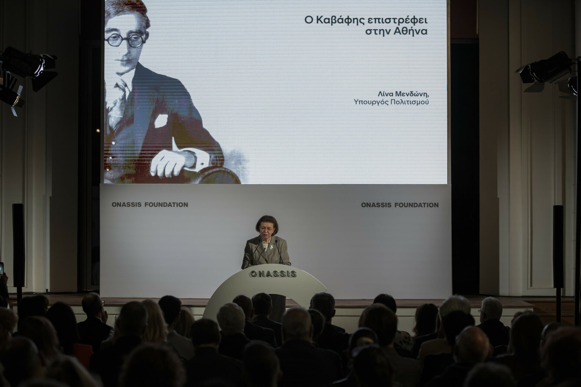 Η κα Λίνα Μενδώνη, Υπουργός Πολιτισμού, δήλωσε: «Η Διονυσίου Αρεοπαγίτου είναι ίσως ο πιο κοσμοπολίτικος δρόμος της Αθήνας, το ιδανικό σημείο για την τοποθέτηση του γλυπτού του Κωνσταντίνου Καβάφη. Εδώ συναντώνται συμβολικά η κλασική Αθήνα και η Ρώμη, ενώ καθημερινά περνούν άνθρωποι από όλο τον κόσμο. Ο Πραξιτέλης Τζανουλίνος απέδωσε με εξαιρετική ευαισθησία τη μορφή του ποιητή. Και αυτό που θεωρώ ιδιαίτερα σημαντικό είναι ότι ο Καβάφης δεν παρουσιάζεται ως μια συμβατική προτομή ή ένας ανδριάντας, αλλά καθισμένος σε ένα παγκάκι, προσκαλώντας τον καθένα να καθίσει δίπλα του, να διαβάσει, να σκεφτεί και να συνομιλήσει μαζί του. Πρόκειται για ένα ξεχωριστό τοπόσημο, το τρίτο που δημιουργείται για τον Καβάφη με τη συμβολή του Ιδρύματος Ωνάση, μετά το Aρχείο και την οικία του στην Αλεξάνδρεια. Ένα έργο που μας καλεί όλους να πλησιάσουμε τον ποιητή και να ανακαλύψουμε ξανά τη φωνή του μέσα από τα ποιήματά του».