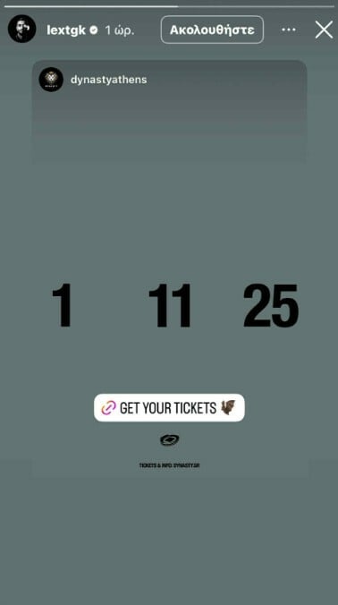 Σχετική ανάρτηση έκανε και ο ΛΕΞ στο Instagram, δημοσιεύοντας το λινκ για τα εισιτήρια.