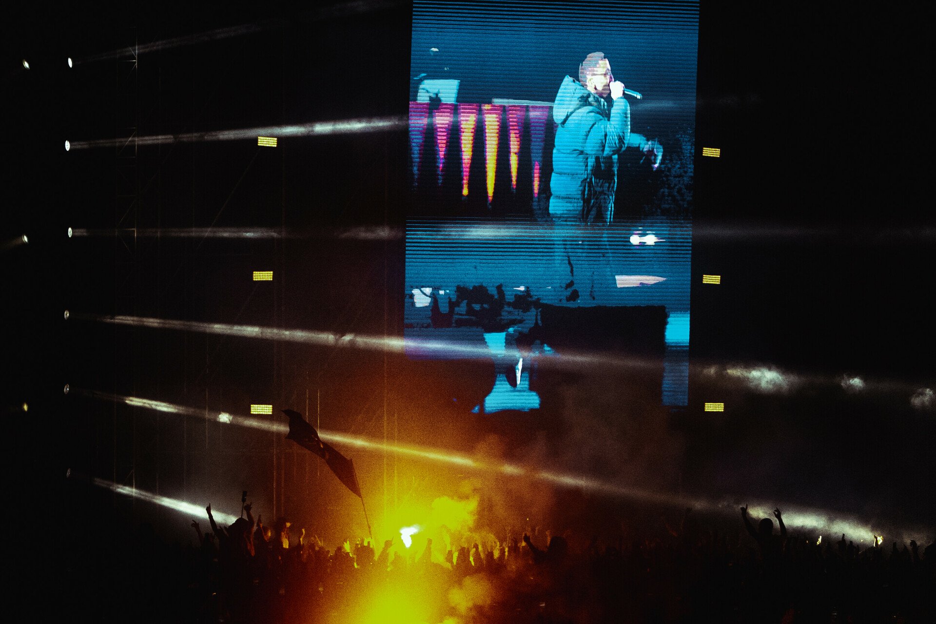 Από νωρίς χθες το απόγευμα, το πλήθος άρχισε να συγκεντρώνεται γύρω από το στάδιο, δημιουργώντας μια ατμόσφαιρα προσμονής και ενθουσιασμού. Νέοι και μεγαλύτεροι, άνθρωποι από κάθε γωνιά της Ελλάδας, πήγαν για να ζήσουν από κοντά τη μοναδική εμπειρία που προσφέρει κάθε live εμφάνιση του εμβληματικού ράπερ.