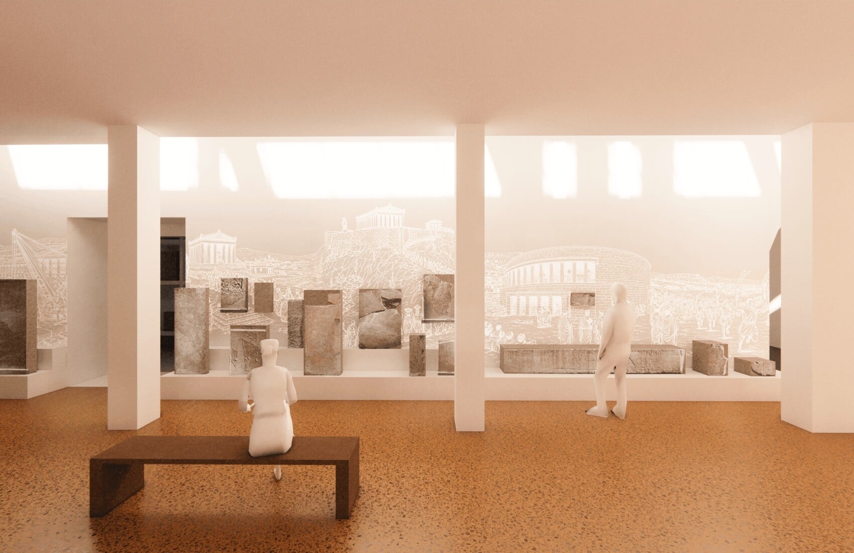 Όσον αφορά στο Επιγραφικό Μουσείο, οι κυριότερες προτεινόμενες μουσειογραφικές επεμβάσεις συνοψίζονται στην καθοδηγούμενη πορεία της έκθεσης, στην ομαδοποίηση της εκτενούς εκθεσιακής αφήγησης σε χωροθεματικές ενότητες, στην ενσωμάτωση της πρακτικής της ανοικτής αποθήκευσης στην εκθεσιακή πορεία και στον συνδυασμό της παρατακτικής-χρονολογικής παρουσίασης των εκθεμάτων με τη δημιουργία νησίδων από εξέχοντα κυρίως επιγραφικά μνημεία, που αποδίδουν τις ιδιαίτερες θεματικές κάθε χρονολογικής περιόδου. Στην νέα έκθεση του ΕΜ παρουσιάζονται έως 650 επιγραφές σε χώρο επιφανείας έως 1.400 τ.μ.