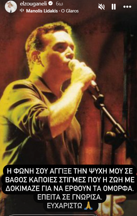 Στο δικό της προφίλ, η Ελεωνόρα Ζουγανέλη, έγραψε: «Η φωνή σου άγγιξε την ψυχή μου σε βάθος, κάποιες στιγμές που η ζωή με δοκίμαζε για να έρθουν τα όμορφα. Έπειτα σε γνώρισα. Ευχαριστώ».