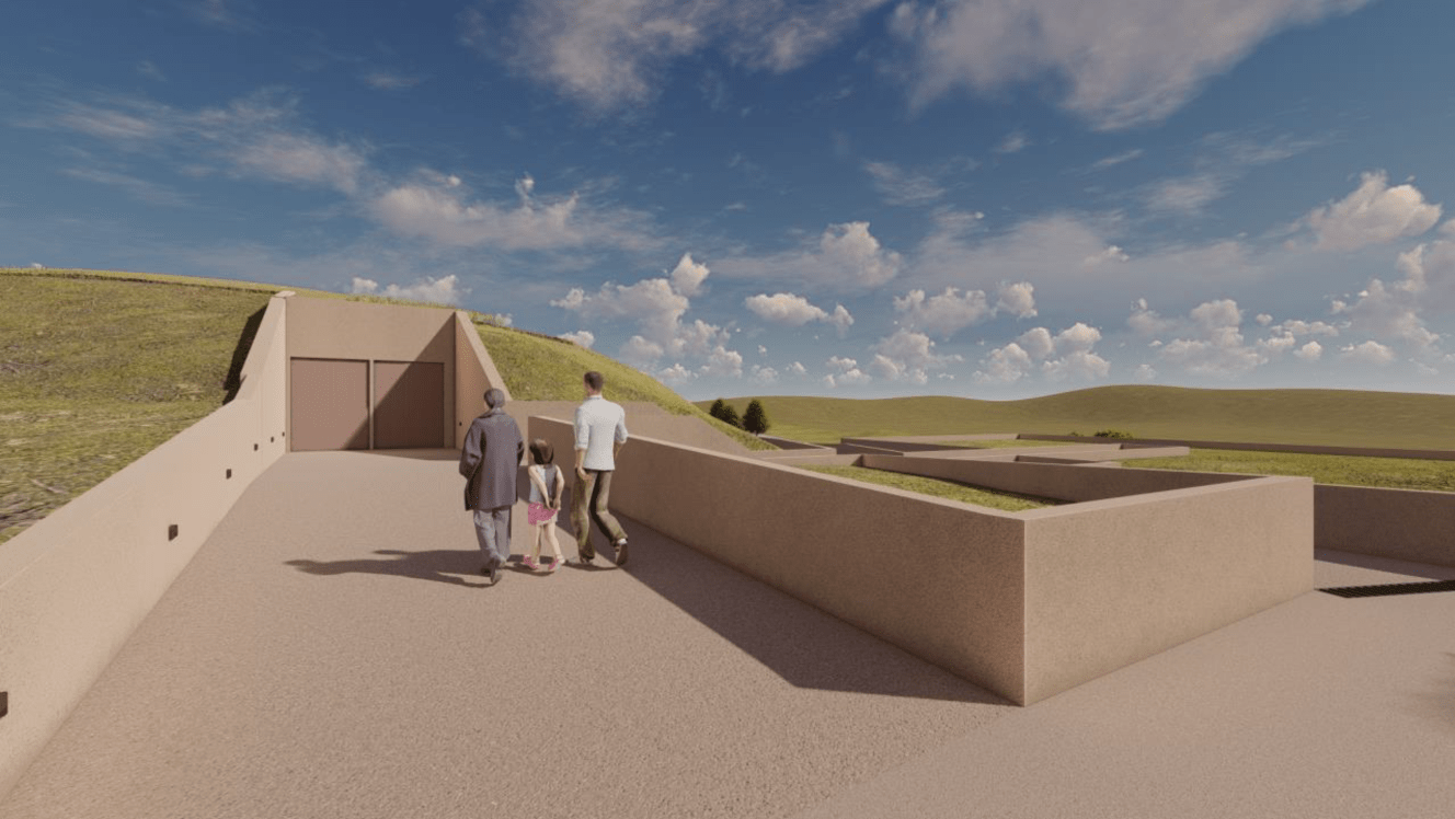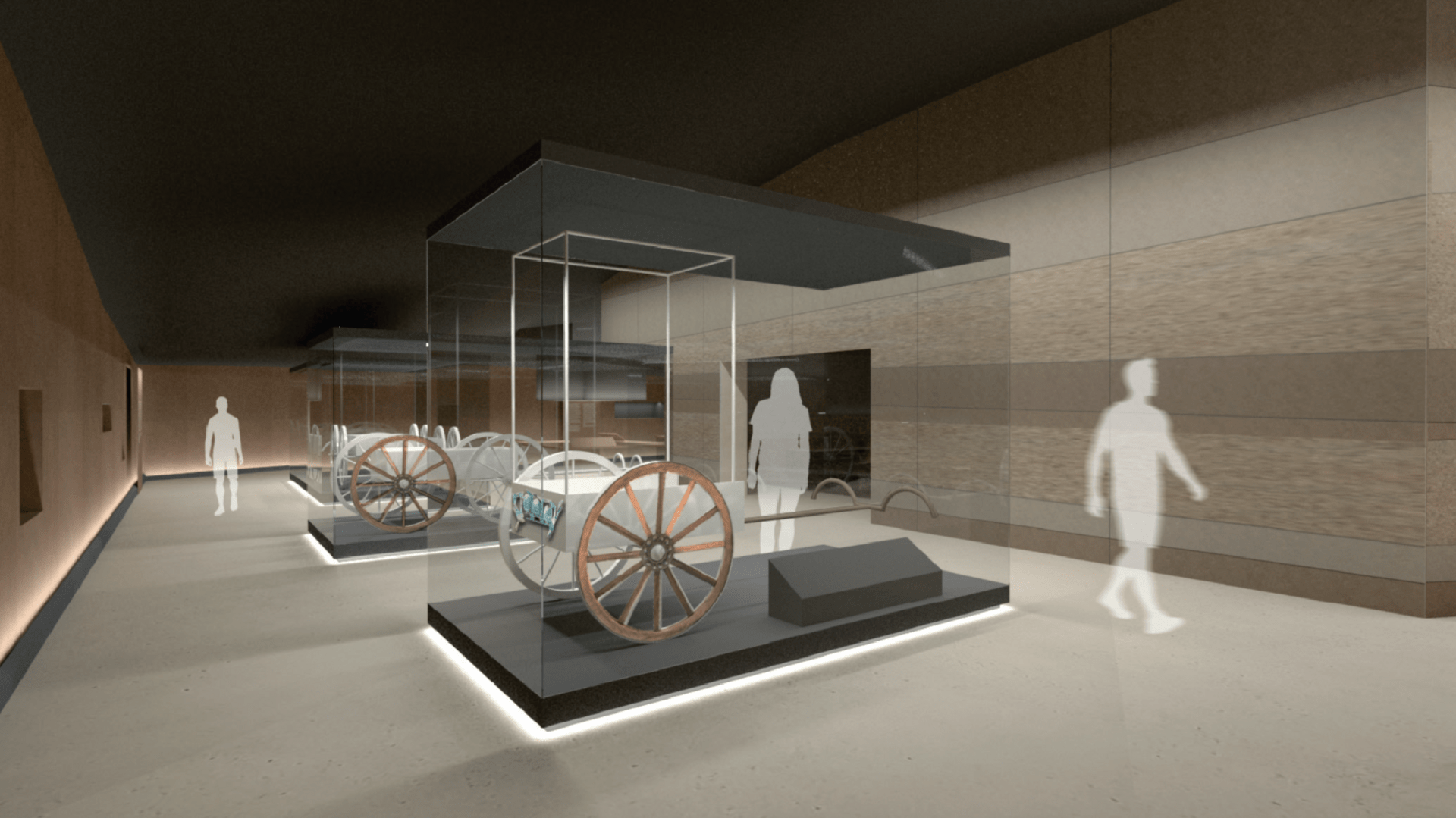 Φωτορεαλιστική απεικόνιση του κεντρικού κτηρίου προστασίας των αρχαιολογικών συνόλων του τύμβου