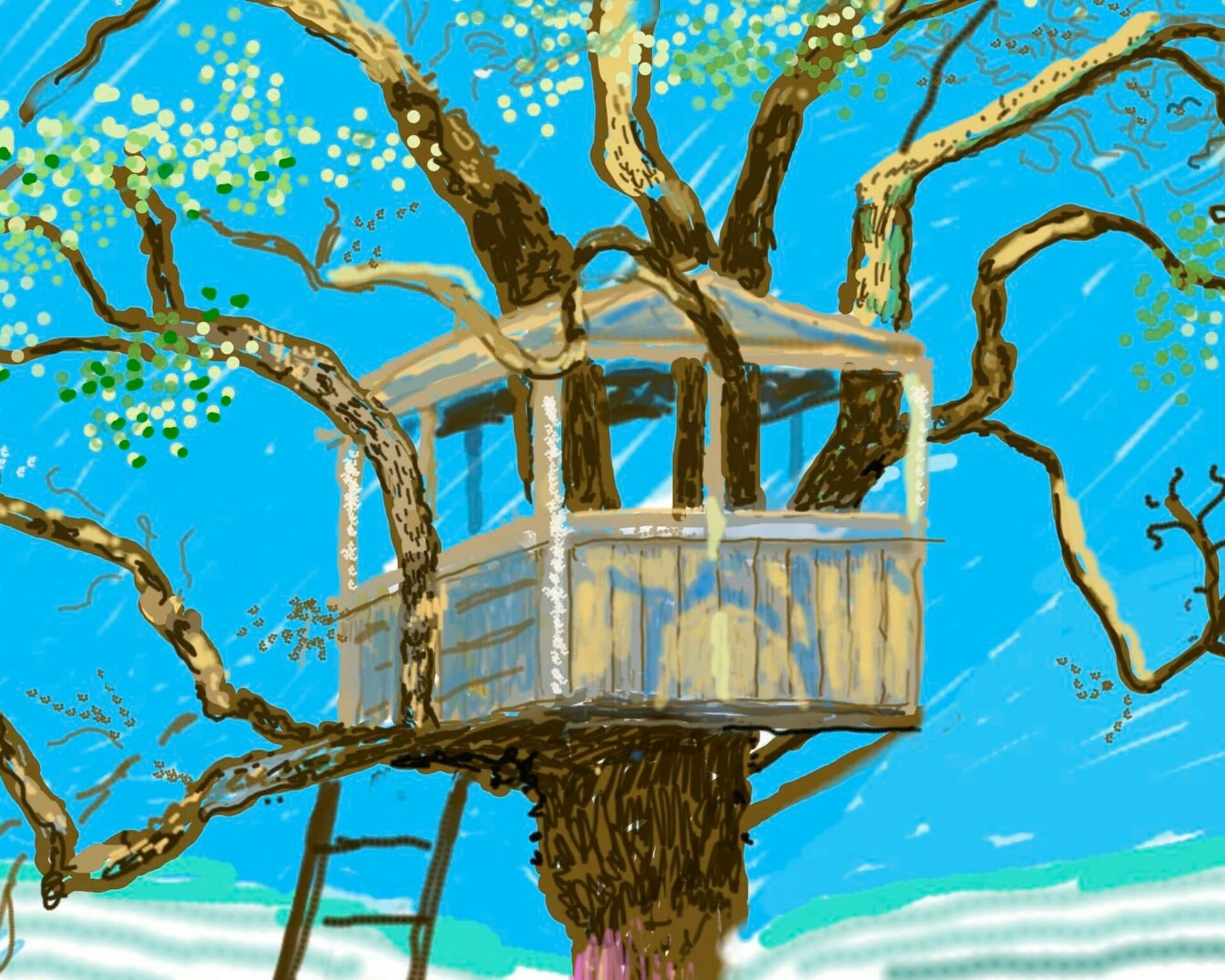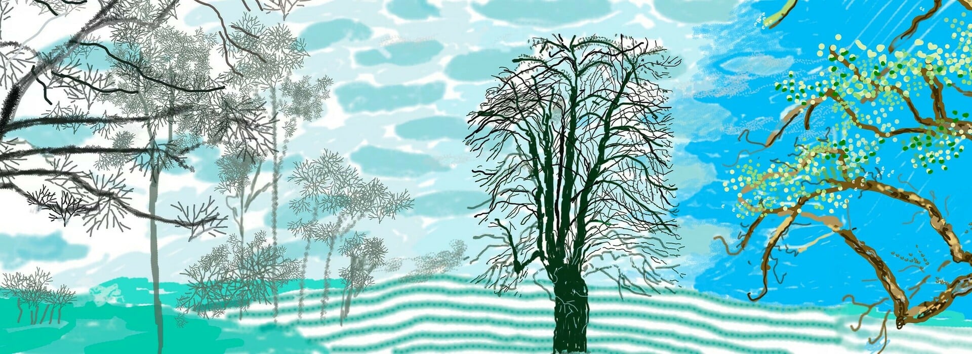Στην καρδιά της έκθεσης βρίσκεται το A Year in Normandie, μια ζωγραφική ζωφόρος περίπου 90 μέτρων, φτιαγμένη από περισσότερες από 100 ψηφιακές εικόνες που ο Hockney δημιούργησε στο iPad την περίοδο του lockdown, παρακολουθώντας τις εποχές να αλλάζουν γύρω από το στούντιό του στη Νορμανδία. Το έργο αντλεί από την ταπισερί της Μπαγιέ και τα κινεζικά scrolls, αλλά παραμένει απολύτως σύγχρονο στη λογική και στο μέσο του.