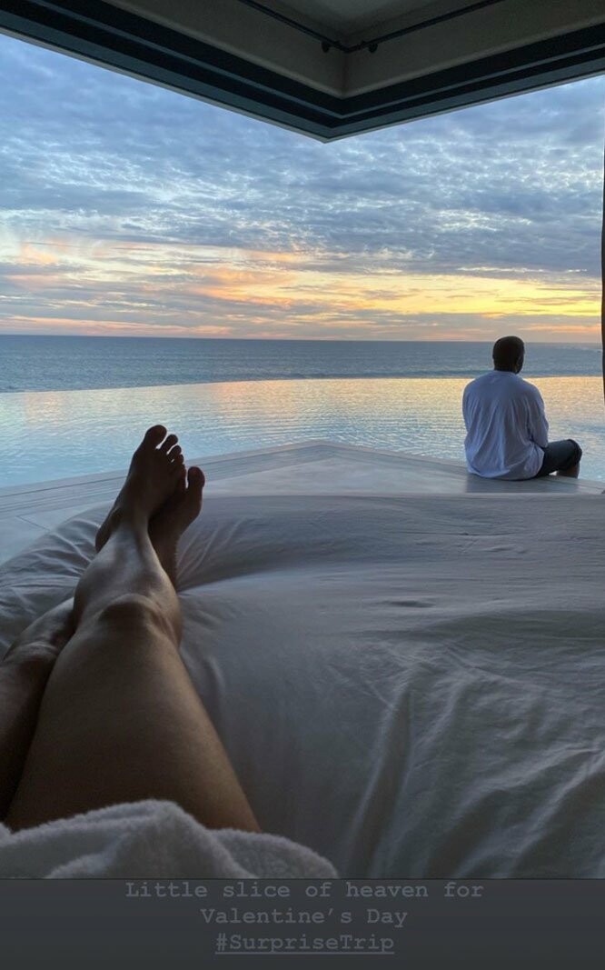 Σε Instagram Story της, η 39χρονη σταρ αποκάλυψε πως ο διάσημος ράπερ τής είχε ετοιμάσει ένα «ταξίδι-έκπληξη» με αφορμή την γιορτή των ερωτευμένων, και δημοσίευσε διάφορα στιγμιότυπα από την διαμονή τους στο πολυτελές θέρετρο.
