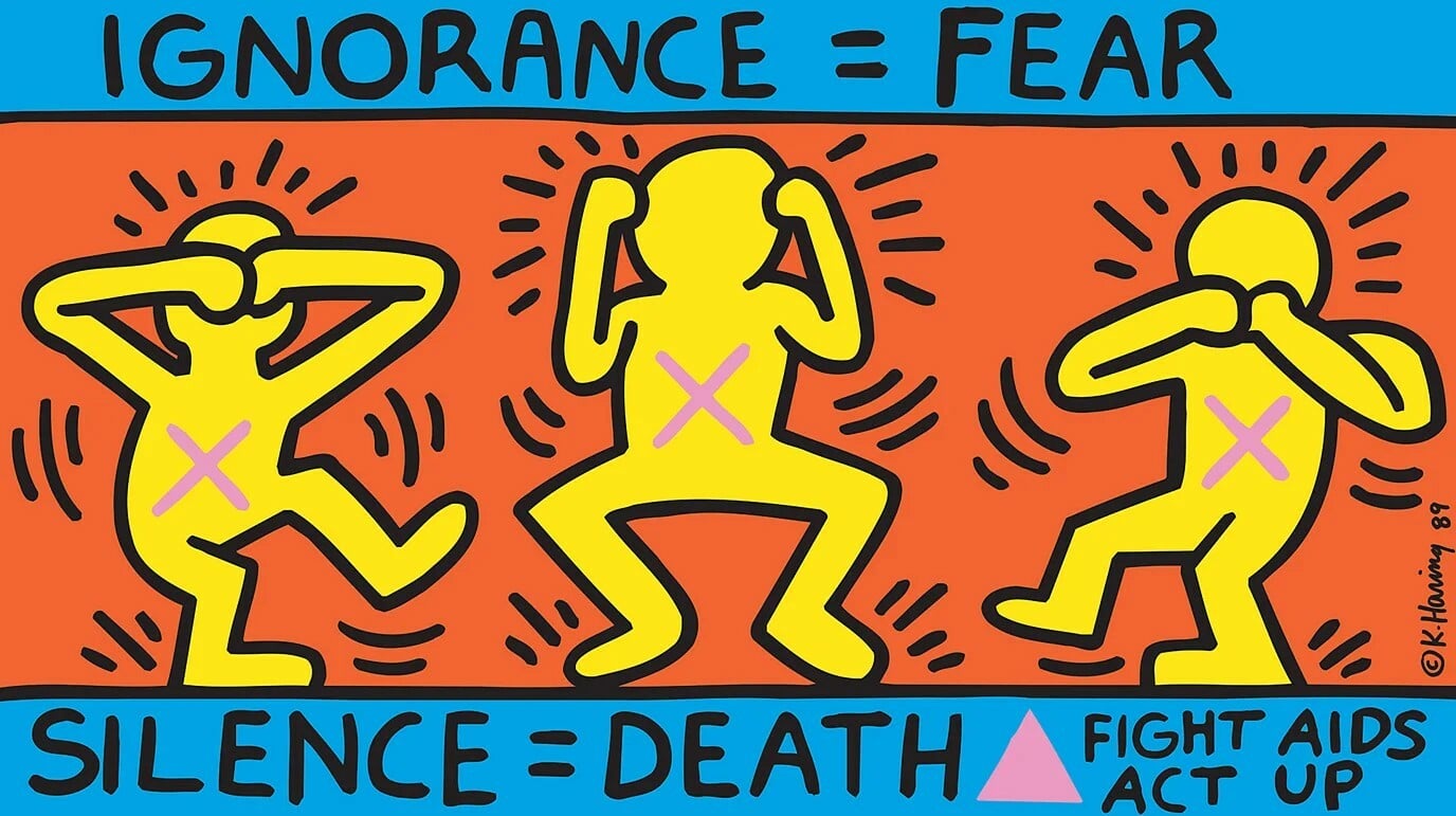 Ακριβώς εκεί, όμως, αρχίζει και η σημερινή ένταση γύρω από το όνομά του. Γιατί ο Haring δεν ήταν απλώς ένας δημιουργός αναγνωρίσιμων συμβόλων. Η δουλειά του ήταν δεμένη με τη δημόσια πόλη, με την queer κουλτούρα της Νέας Υόρκης και, όλο και πιο έντονα στα τελευταία χρόνια της ζωής του, με την κρίση του AIDS και τον ακτιβισμό γύρω από αυτή. Όταν η εικόνα του μένει παντού αλλά οι ιστορικές και σωματικές συνθήκες που τη γέννησαν ξεθωριάζουν, τότε η επιτυχία του κινδυνεύει να μοιάζει και με εξομάλυνση.