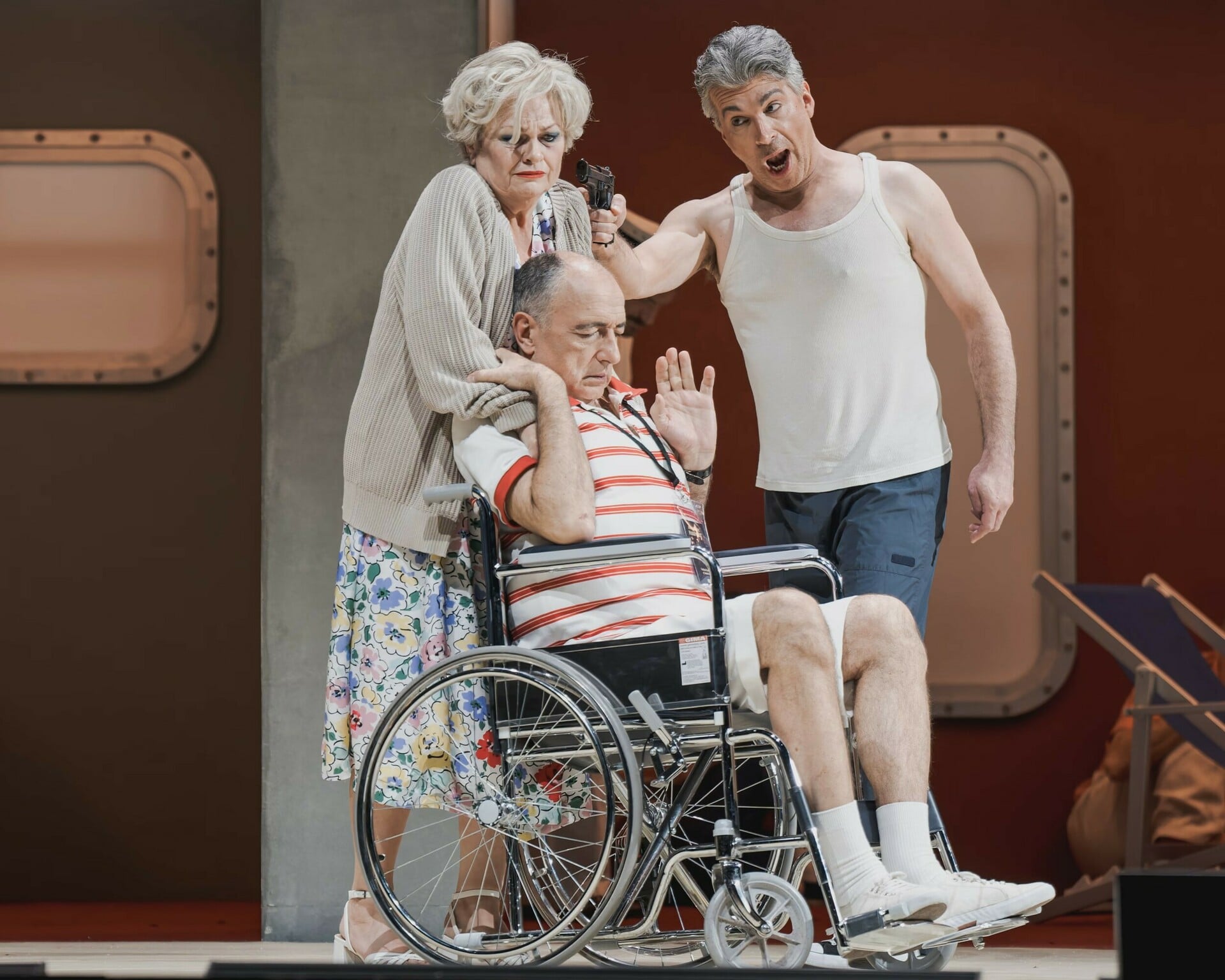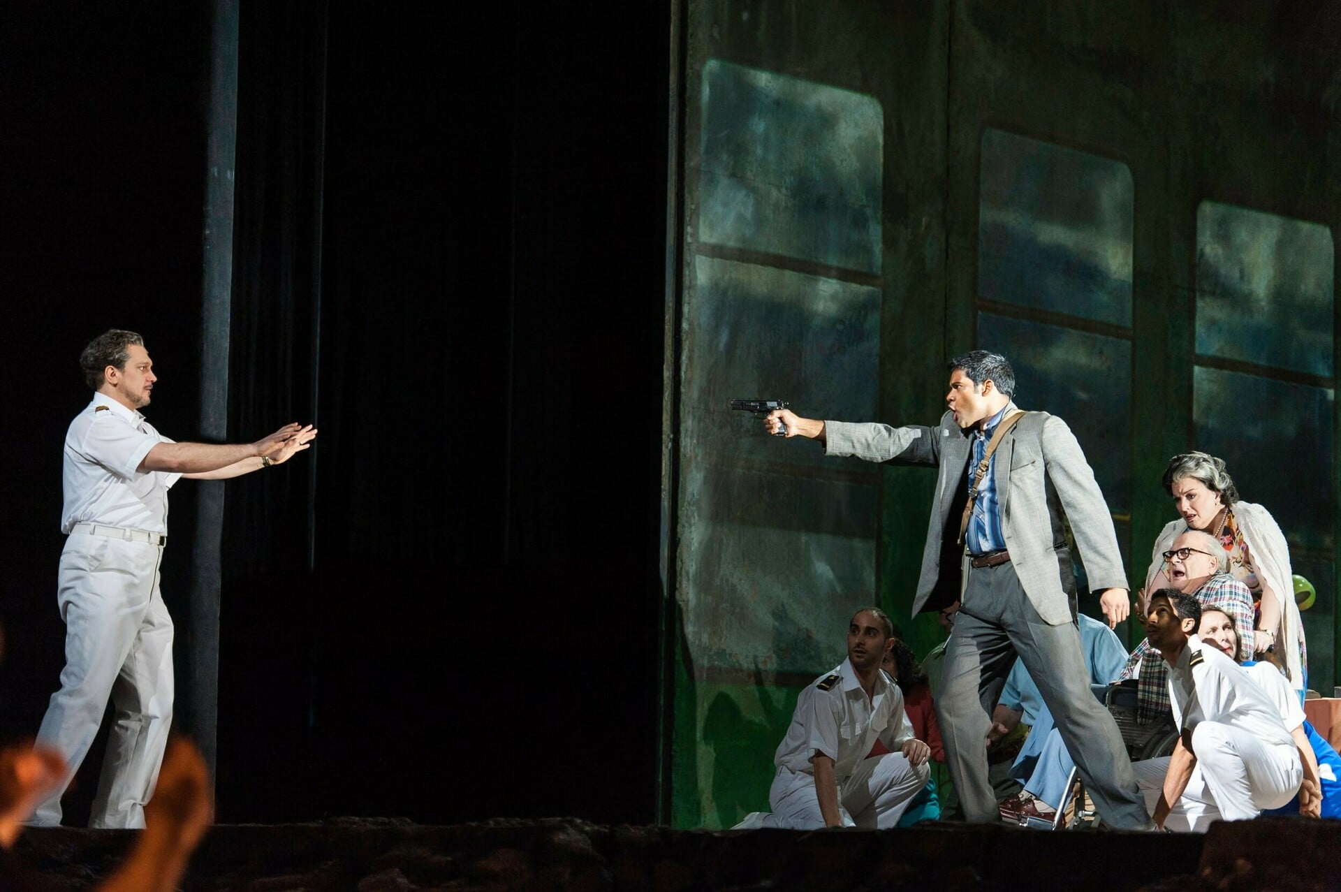Η όπερα βασίζεται στην πειρατεία του Ακίλε Λάουρο το 1985 από μέλη του Παλαιστινιακού Απελευθερωτικού Μετώπου και στη δολοφονία του Λέον Κλίνγκχοφερ, του Αμερικανοεβραίου επιβάτη σε αναπηρικό αμαξίδιο που οι δράστες πέταξαν νεκρό στη θάλασσα. Από την πρώτη της εμφάνιση κατηγορήθηκε ότι εξανθρωπίζει υπερβολικά τους αεροπειρατές και ότι δημιουργεί μια ηθική ισοδυναμία που πολλοί θεωρούν απαράδεκτη. Το 2014 η παραγωγή της Μετροπόλιταν Οπερας της Νέας Υόρκης προκάλεσε μεγάλες αντιδράσεις και η προγραμματισμένη ζωντανή μετάδοσή της ακυρώθηκε.