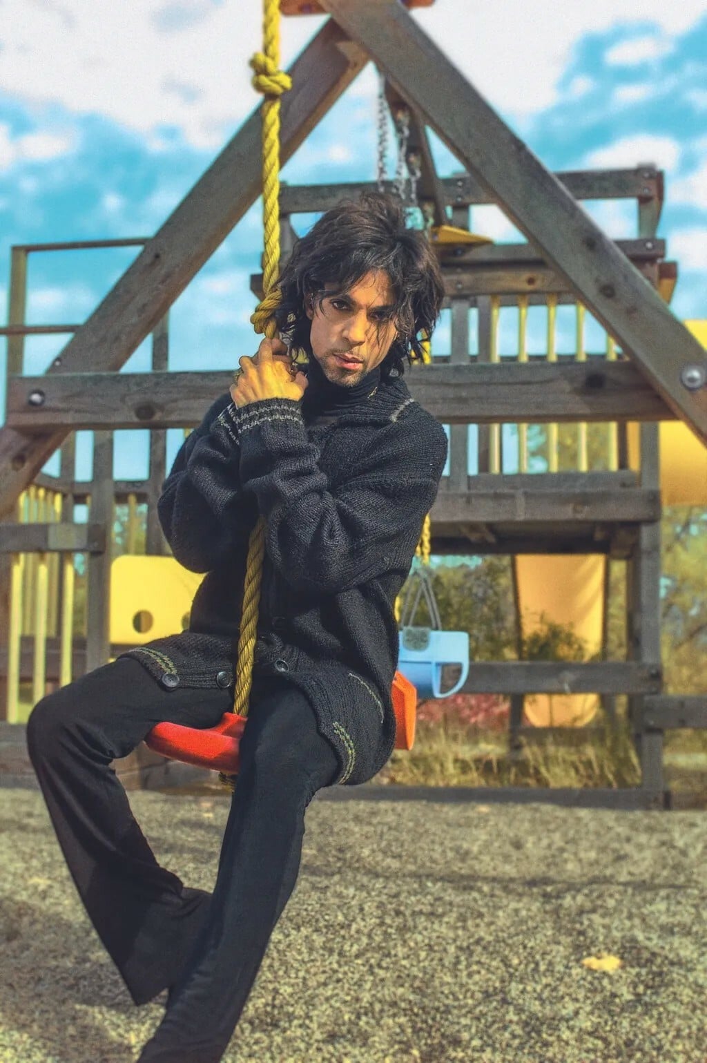 Στην παιδική χαρά των στούντιο Paisley Park. «Τη μέρα που φωτογραφίζαμε εκεί, καταλήξαμε στην παιδική χαρά μπροστά από το στούντιο, που είχε φτιαχτεί για το παιδί του Prince και της Μέιτε, αλλά και, όπως μου είπε ο ίδιος, για τα παιδιά και άλλων εργαζομένων στο Paisley Park. Δυστυχώς, το παιδί τους δεν επέζησε. Όταν αρχίσαμε να φωτογραφίζουμε σε αυτό το σημείο, ένιωσα πως η διάθεσή του άλλαξε αισθητά και έγινε πολύ πιο σκοτεινή». Φωτ.: Steve Parke
