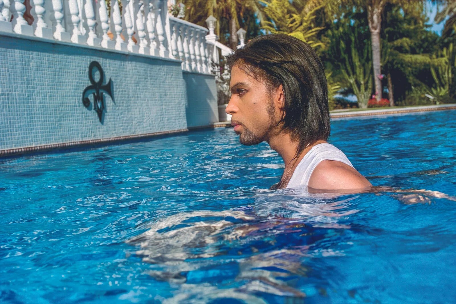 Στην πισίνα του σπιτιού του Prince και της Μέιτε στη Μαρμπέγια της Ισπανίας. «Για αυτή τη φωτογράφιση ο Prince μου είπε να μπω στο νερό, αλλά φοβόμουν μήπως βραχεί η πανάκριβη μηχανή, οπότε έμεινα ισορροπώντας στην άκρη της πισίνας. Τελικά αυτό ήταν ακόμη χειρότερο, γιατί προσπαθούσα να κρατήσω την ισορροπία μου ενώ η μηχανή γινόταν όλο και πιο βαριά. Το καλό ήταν ότι βγήκαν πολλές ενδιαφέρουσες εικόνες — και δεν μου έπεσε η μηχανή». Φωτ.: Steve Parke