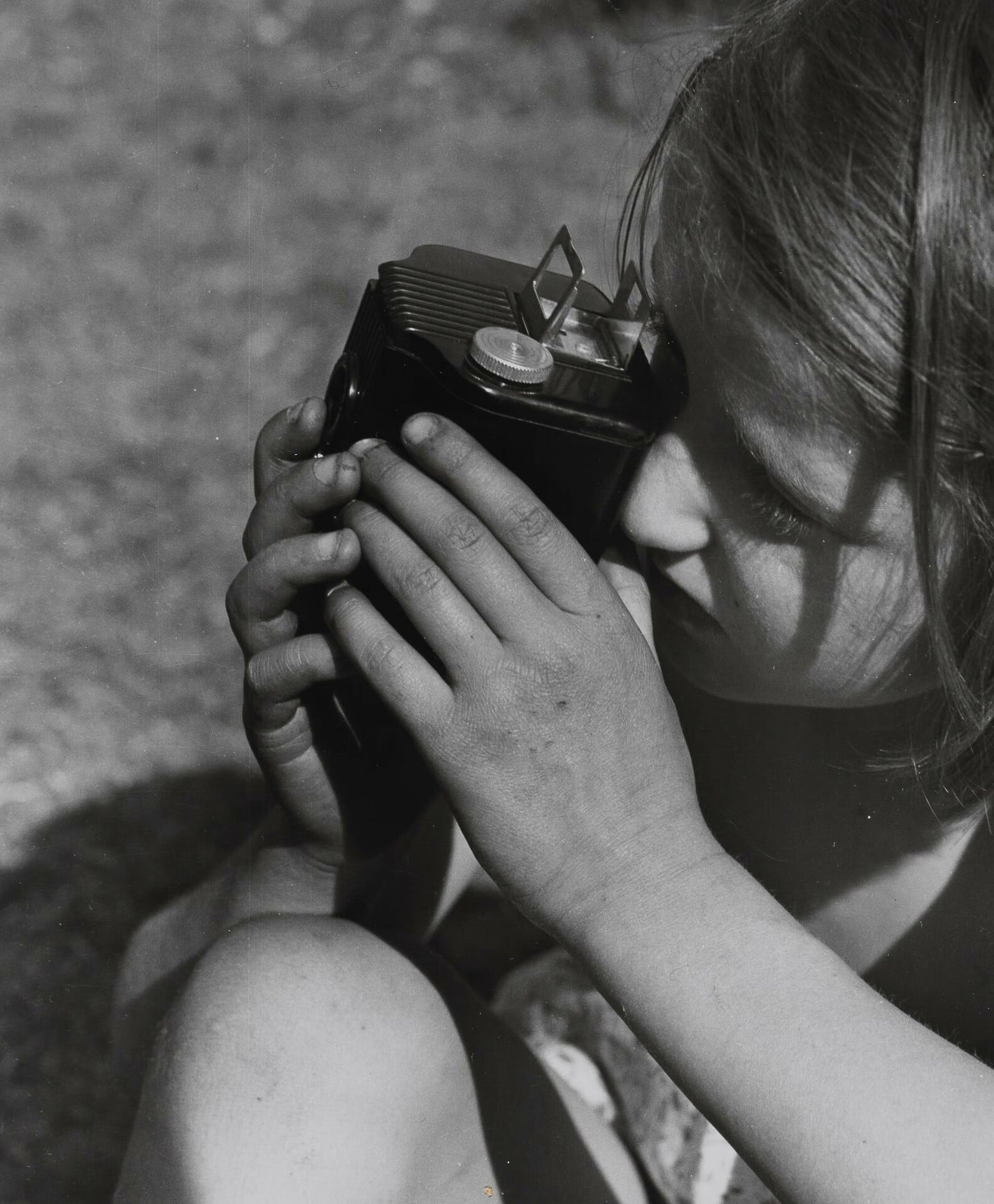 Λουτσία Μόχολι, Girl With Camera Taking Photographs, περ. 1929 Ένα κορίτσι με φωτογραφική μηχανή, σε μία από τις πιο εμβληματικές εικόνες της Λουτσία Μόχολι για τη γυναικεία οπτική εμπειρία και τη μετάδοση του βλέμματος.