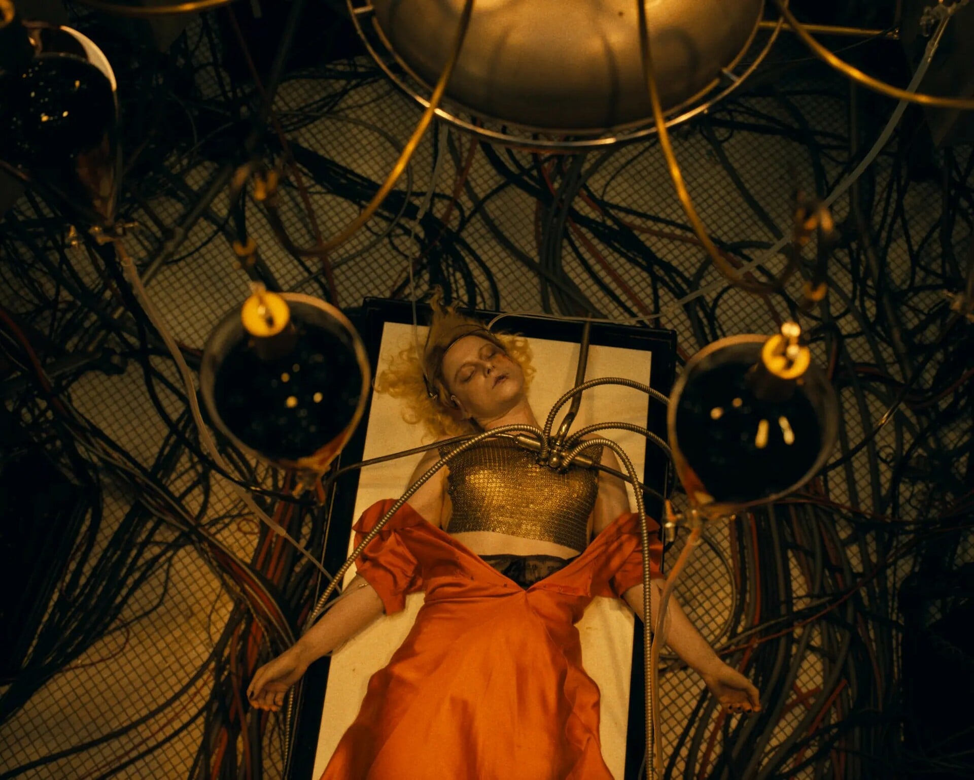 Η Νύφη εδώ δεν είναι απλώς δημιούργημα — είναι πεδίο πάνω στο οποίο γράφεται η αποτυχία του δημιουργού. Η εικόνα της φέρει το ίχνος της τεχνητής κατασκευής. Το σώμα γίνεται αρχείο.