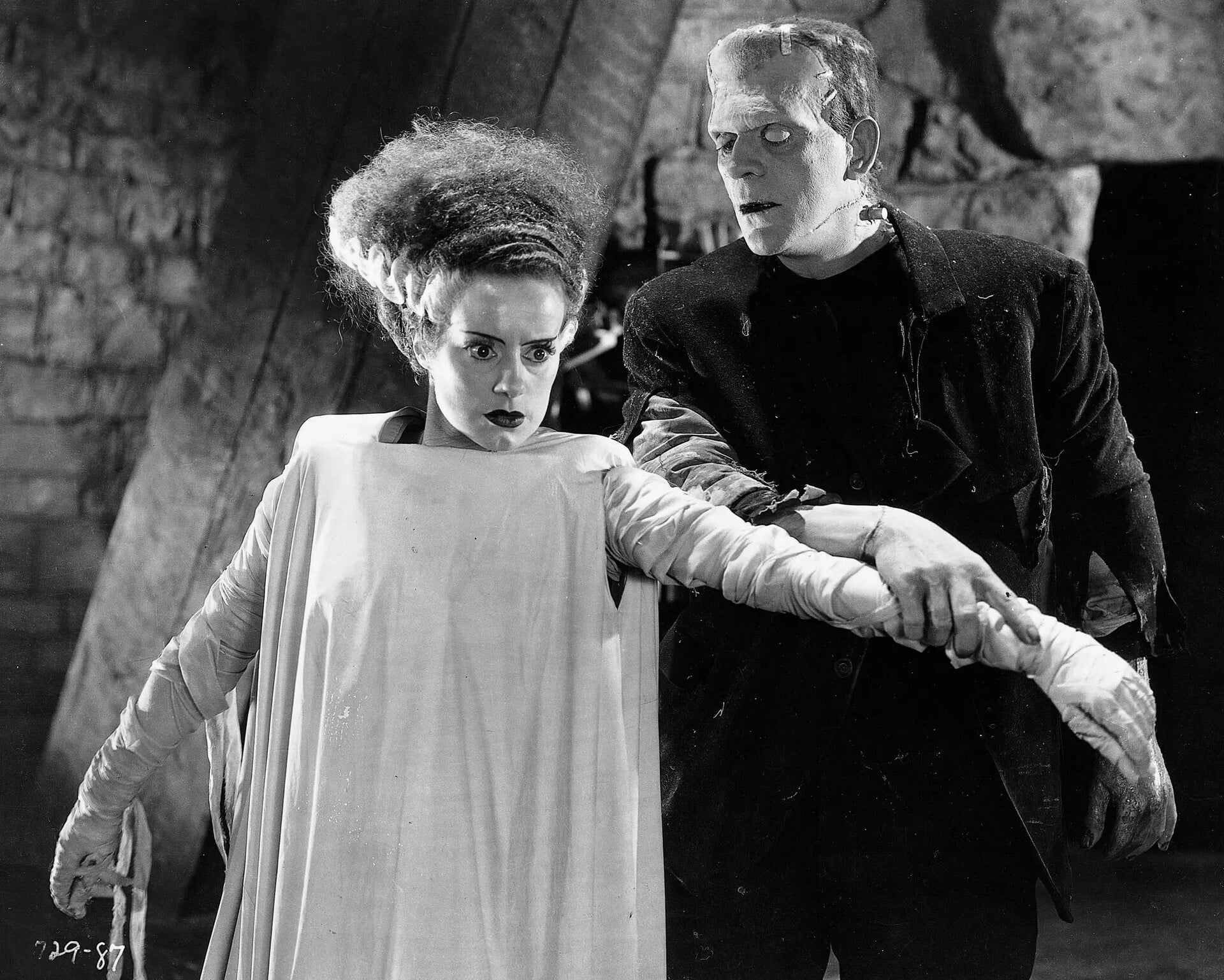 Αυτό το “όχι” είναι θεμελιώδες. Η Νύφη δεν εκπληρώνει τον ρόλο που της επιβλήθηκε. Δεν γίνεται παρηγοριά. Δεν γίνεται ανταμοιβή. Είναι ηλεκτρισμένη, αλλόκοτη, σχεδόν υπερφυσικά απόμακρη. Το μακιγιάζ του Jack Pierce και το χαρακτηριστικό bouffant δημιούργησαν ένα από τα πιο αναγνωρίσιμα εικονίδια του σινεμά.