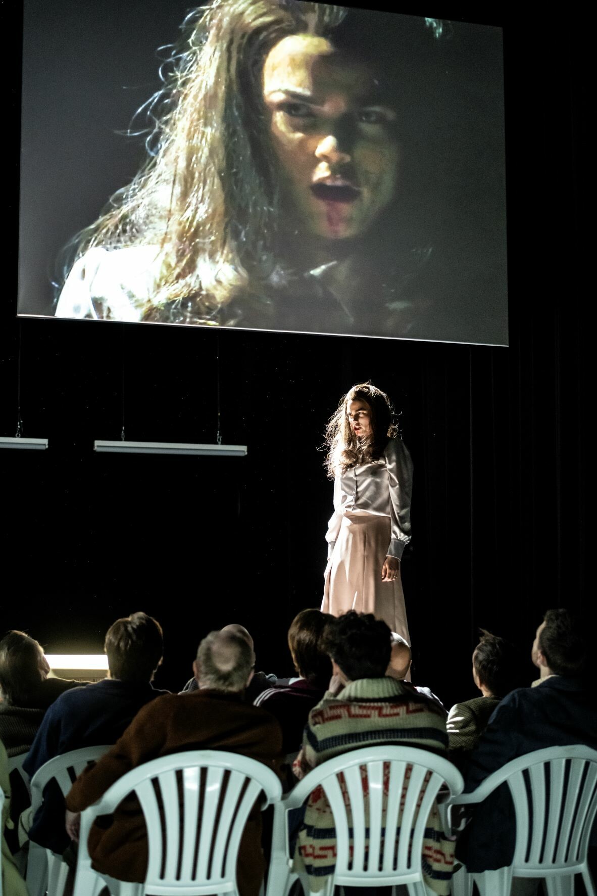 Σύντομα όμως, ο Ηρακλής (που στο έργο ερμηνεύεται από γυναίκα ηθοποιό) θα κάνει την ανατροπή φέρνοντας πίσω την Άλκηστη από τον Κάτω Κόσμο. Στο έργο του Ευριπίδη, η Άλκηστη είναι ξανά ζωντανή, αλλά είναι ανίκανη να αρθρώσει έστω μία λέξη. Στην εκδοχή της Παπακωνσταντίνου, η Άλκηστη μιλάει. Ποιά είναι η Άλκηστη τώρα;