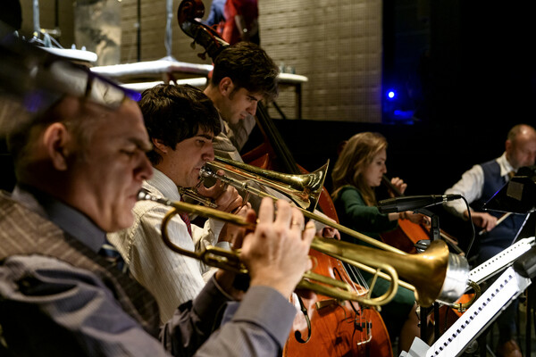 Την ίδια στιγμή, η ζωντανή τζαζ ορχήστρα παρακολουθεί τη δράση, παρεμβαίνει και σχολιάζει.