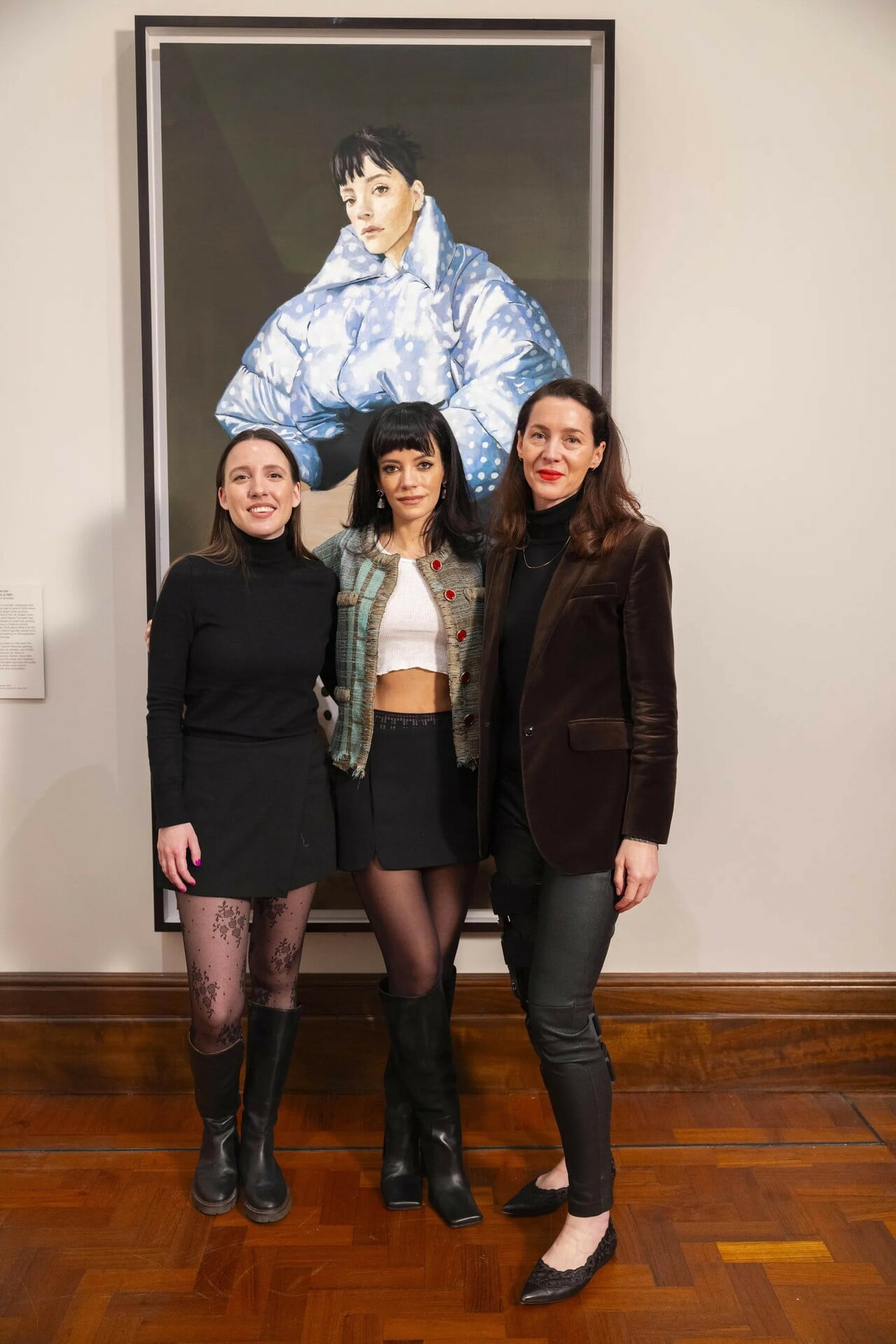 Η εικόνα έχει ήδη τη δική της αναγνωρισιμότητα. Η Allen εμφανίζεται καθισμένη απέναντι στον θεατή, με γαλάζιο πουά μπουφάν, μέσα σε μια σύνθεση που κρατά ισορροπία ανάμεσα στην αυστηρότητα της κλασικής προσωπογραφίας και σε μια πολύ σύγχρονη αίσθηση ύφους και παρουσίας. Αυτό είναι και ένα από τα βασικά χαρακτηριστικά της δουλειάς της Gonzalez, η οποία δουλεύει συστηματικά πάνω στη συνάντηση της μπαρόκ ζωγραφικής, του δραματικού φωτισμού και των σημερινών γυναικείων μορφών.
