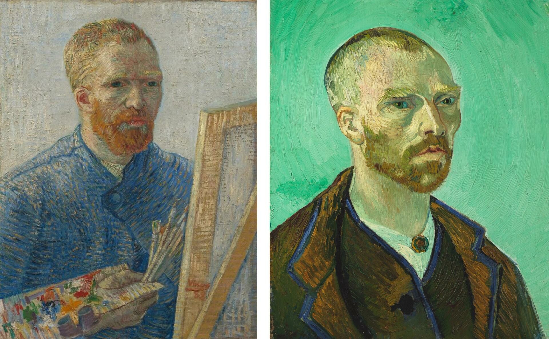 Οι κύριες πηγές του πλαστογράφου ήταν δύο αυθεντικές αυτοπροσωπογραφίες, το ένα που δείχνει τον καλλιτέχνη στο καβαλέτο (Δεκέμβριος 1887-Φεβρουάριος 1888) και το άλλο ζωγραφισμένο για τον Πωλ Γκωγκέν (Σεπτέμβριος 1888).
