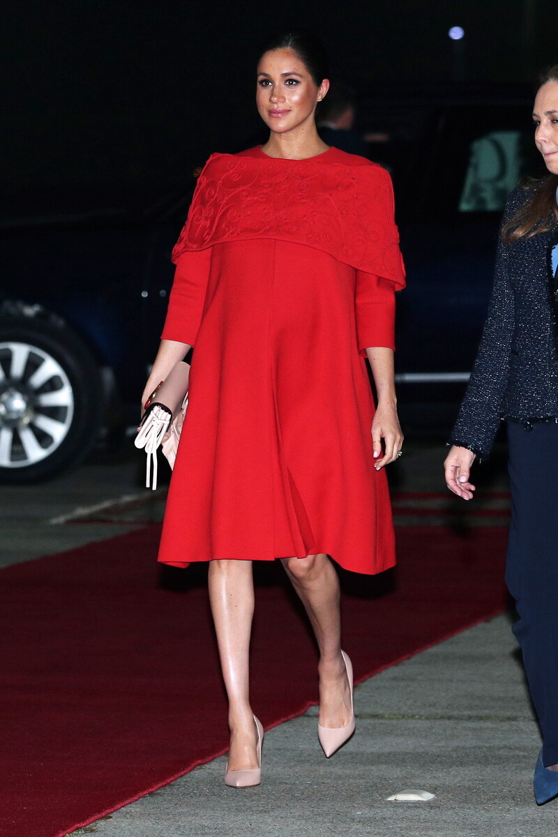 Το κόκκινο Valentino φόρεμα και τα αξεσουάρ Dior σχολιάστηκαν από τα περιοδικά μόδας, όπως κάθε εμφάνιση της Μέγκαν Μαρκλ που αναλύεται εξονυχιστικά.
