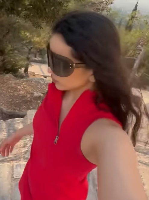Η ποπ τραγουδίστρια διακρίνεται σε στόρι να περπατά με ψιλοτάκουνα στον βράχο έχοντας ως φόντο μνημεία όπως τα Προπύλαια και το Ερέχθειο.