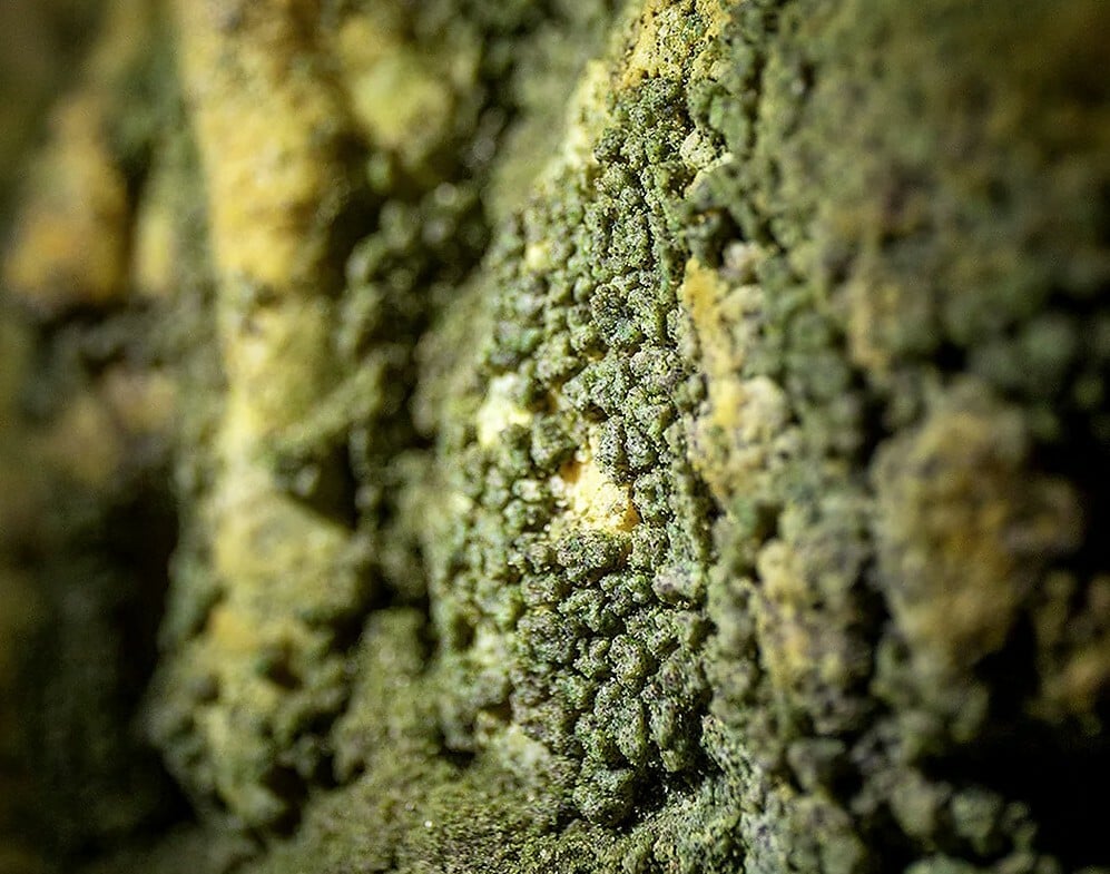 «Αρχίσαμε να προχωράμε όλο και πιο βαθιά μέσα στη σπηλιά», λέει ο Μπάρτον. «Τελικά φτάσαμε σε ένα σημείο όπου δεν μπορούσαμε να δούμε χωρίς να χρησιμοποιήσουμε φακούς. Χρειαζόμασταν φακούς κεφαλής για να μπορούμε να δούμε το χέρι μας μπροστά στο πρόσωπό μας, και παρόλα αυτά μπορούσαμε να διακρίνουμε πράσινο χρώμα στον τοίχο».