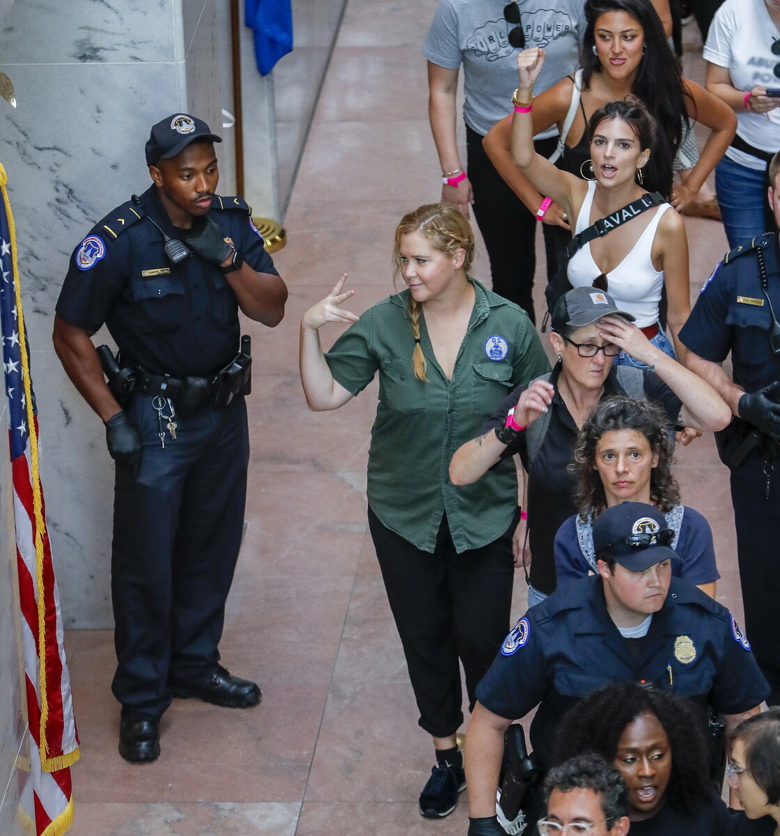 Η ηθοποιός Έιμι Σούμερ, με σημαντική δράστη στο φεμινιστικό κίνημα Time's Up συνελήφθη ενώ φωτογραφίες των δύο διάσημων γυναικών από τη στιγμή της σύλληψής τους δόθηκαν στη δημοσιότητα.