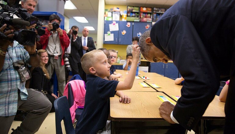 Ωστόσο ο Pete Souza έχει εκτός από μερικές επιβλητικές φωτογραφίες του Ομπάμα, απαθανατίσει και την ανθρώπινη πλευρά του προέδρου. Πρόσφατα μοιράστηκε ένα ακόμη στιγμιότυπο από μια εντός ατζέντας, χαριτωμένη συνάντηση του Ομπάμα.