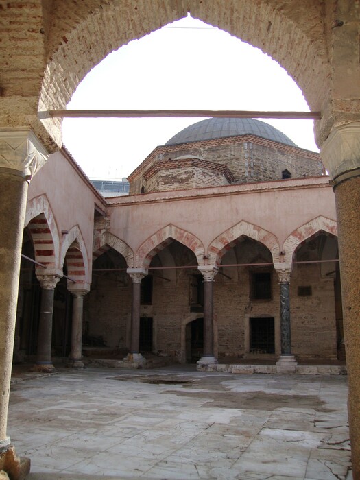 Σε αυτή προστέθηκαν διαμερίσματα, στη βορειανατολική και νοτιοδυτική πλευρά και έκκεντρο προστώο, στη βορειοδυτική πλευρά και τη δυτική γωνία, τα οποία αποτελούν ενιαίο περίστωο περιβάλλοντας το τέμενος σε σχήμα «Π». Τα διαμερίσματα του περιστώου, αναπτύσσονται παράλληλα με τους πλευρικούς τοίχους του κυρίως τεμένους. Το αίθριο έχει κάτοψη σχήματος τραπεζίου, ενώ οι στοές του ορίζονται από κιονοστοιχίες.