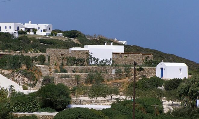 Το πετρόκτιστο σπίτι τους βρίσκεται ανάμεσα στα Γλυφά και στη Χώρα και είναι χτισμένο σε μια έκταση περίπου έξι στρεμμάτων, η οποία είχε αγοραστεί πριν από δεκατέσσερα χρόνια.
