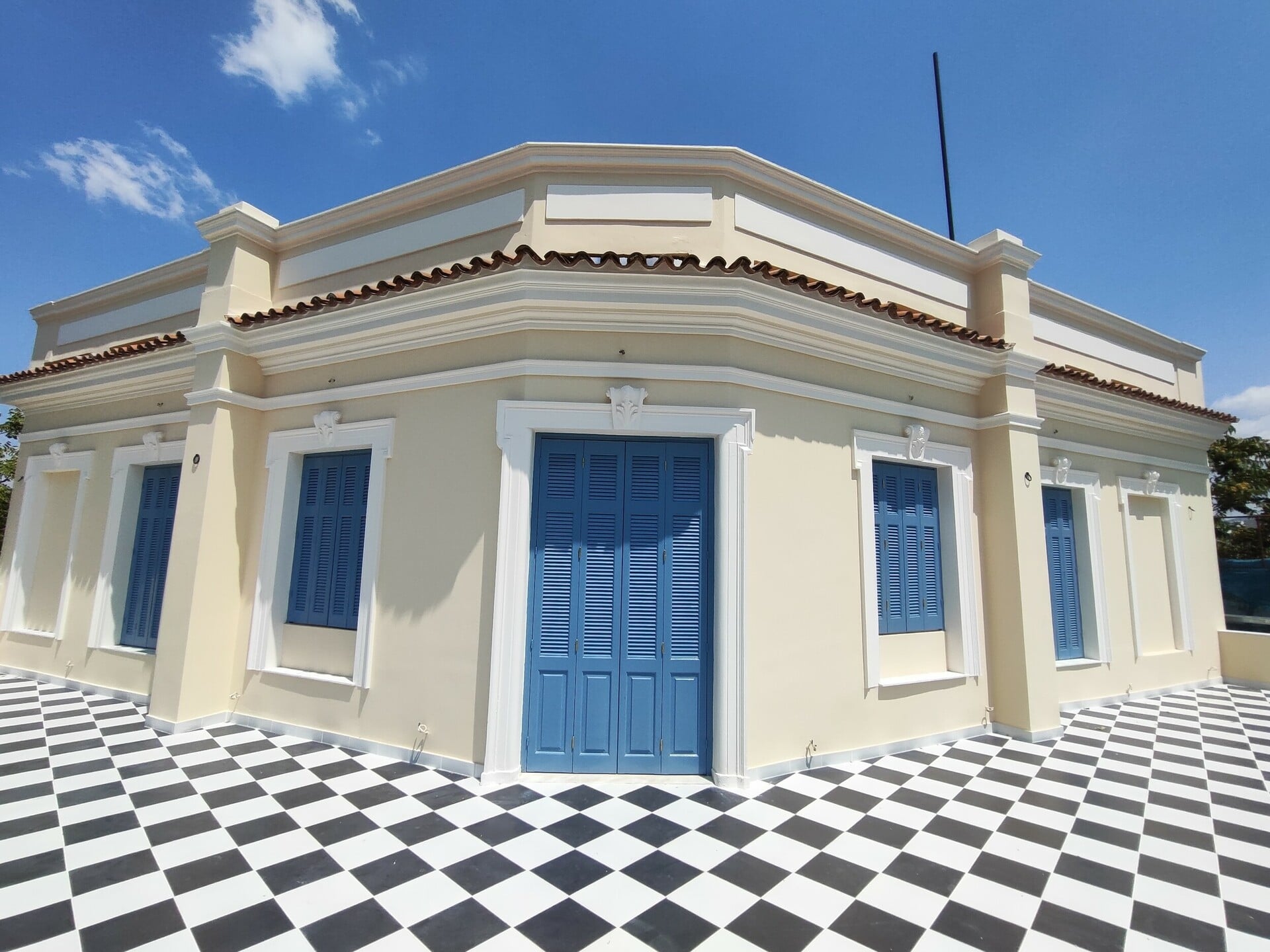 Στο πλαίσιο αυτό πραγματοποιήθηκε πέρα από την στερέωση και αποκατάσταση όλων των σωζόμενων στοιχείων του κτιρίου και η διερεύνηση των αρχικών χρωματισμών των όψεων και του εσωτερικού του. Από τα σωζόμενα στοιχεία τεκμηριώθηκε η αρχική εικόνα του κτιρίου, η οποία και αποκαταστάθηκε. Παράλληλα, υλοποιήθηκαν και εργασίες λειτουργικής αναβάθμισης και προσβασιμότητας σε εμποδιζόμενα άτομα και άτομα με αναπηρία.