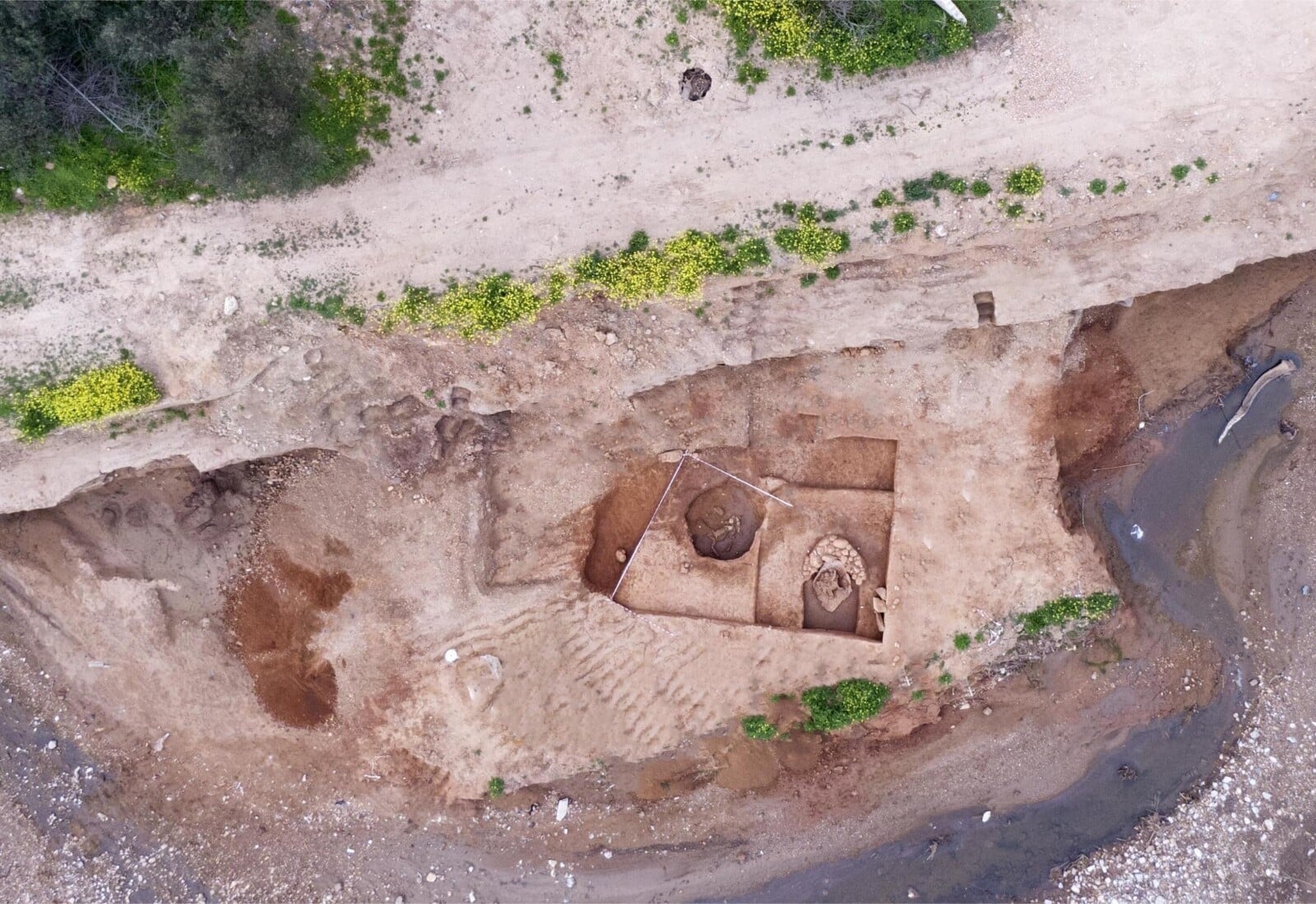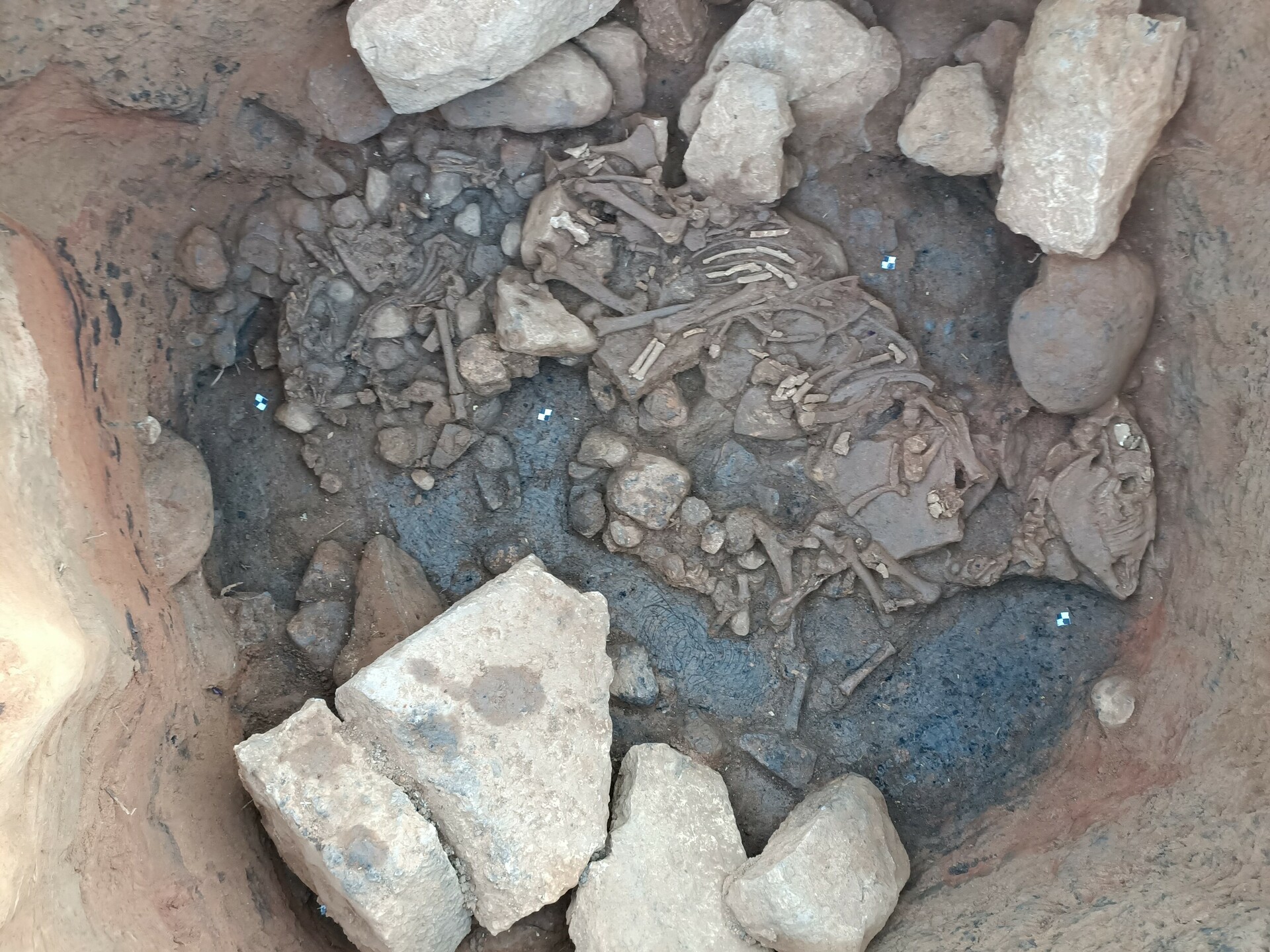 Σε απόσταση περίπου 2 μ. νοτιοανατολικά του πίθου εντοπίστηκε μεγάλος κυκλικός λάκκος με μακρόχρονη χρήση και ίχνη καύσης. Στο άνω τμήμα του βρέθηκε βουκράνιο μαζί με κεραμική και χάλκινα νομίσματα ιστορικών χρόνων, ενώ κοντά στον πυθμένα, πάνω σε παχύ στρώμα καύσης, αποκαλύφθηκαν σκελετός ιπποειδούς και οστά μικρότερων ζώων. Η αρχαιολογική μελέτη σε συνδυασμό με τη ζωοαρχαιολογική και τις αναλύσεις των φυσικών επιστημών, αναμένεται να φωτίσει πιθανές τελετουργικές πρακτικές με θυσίες ζώων, καθώς και τη διαχρονική ιερότητα του χώρου.