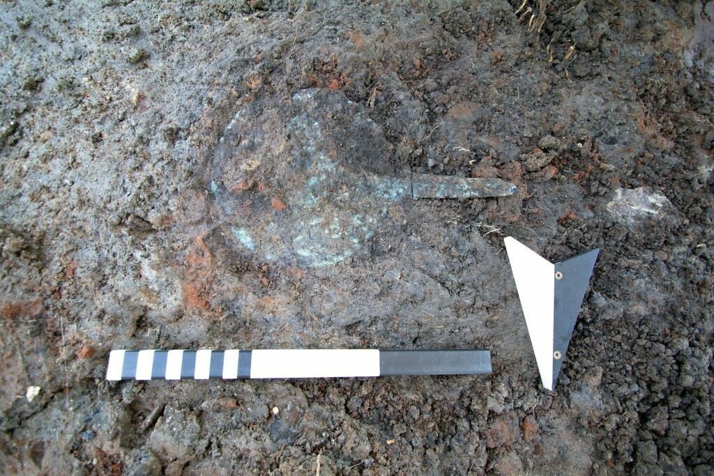 Χάλκινα ελάσματα κατά την ανασκαφή κατά χώραν/Φωτογραφία: ΥΠΠΟ