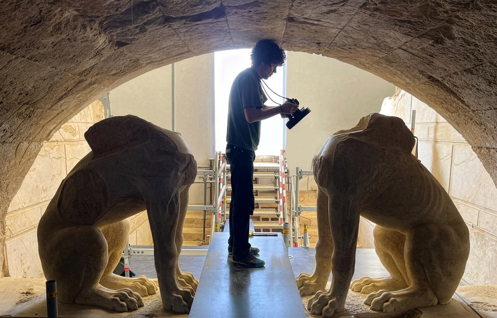 Θα δημιουργηθούν φυσικά αντίγραφα επιλεγμένων μερών του διακόσμου του (πρόσοψη με Σφίγγες, ψηφιδωτό, βάθρο με Λέοντα) και ψηφιακά μοντέλα, όπως και βίντεο εικονικής πραγματικότητας (VR) για μουσειακή χρήση. Εικαστικοί καλλιτέχνες συμβάλλουν δημιουργικά στην ψηφιακή συμπλήρωση και αποκατάσταση, με χρήση εργαλείων τεχνητής νοημοσύνης, σε συνδυασμό με τα αρχαιομετρικά δεδομένα των φθαρμένων, απολεσμένων ή δυσδιάκριτων εικονογραφικών στοιχείων, τόσο του ψηφιδωτού, όσο και των ζωγραφισμένων μαρμάρινων ζωφόρων.