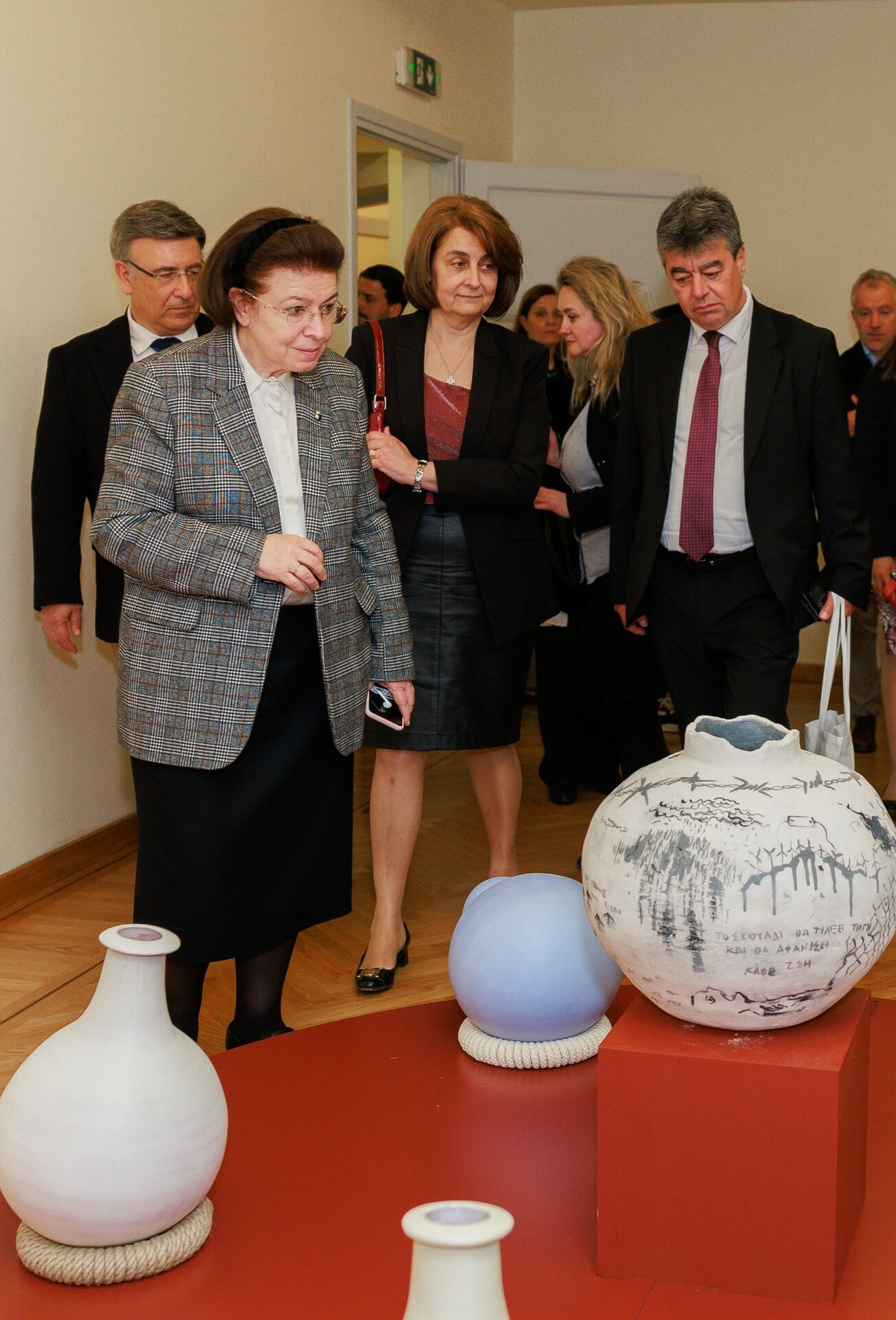 Η πρώτη ημέρα του συνεδρίου ολοκληρώθηκε με τα εγκαίνια από την υπουργό Πολιτισμού της Ομαδικής Έκθεσης Αποφοίτων από τις 19 Εκπαιδευτικές Δομές Χειροτεχνίας.
