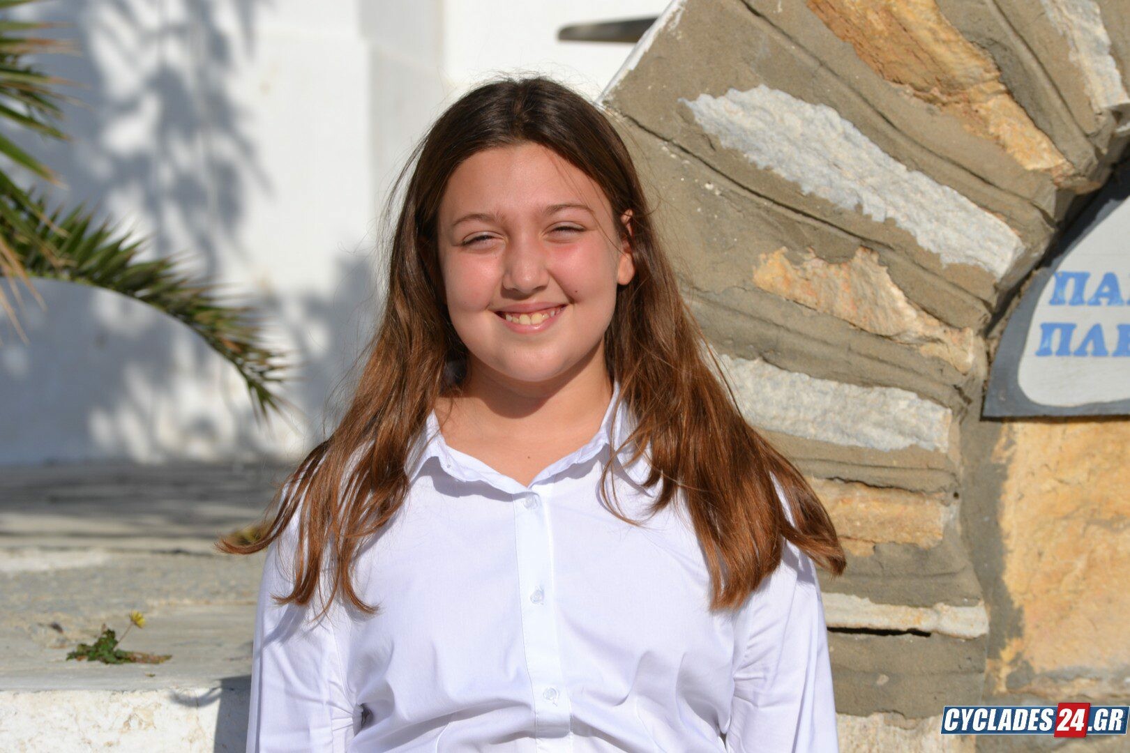 Η μαθήτρια, συνοδευόμενη από τον δάσκαλό της, παρήλασε μπροστά από τους λιγοστούς κατοίκους του Απόλλωνα, καταχειροκροτούμενη.