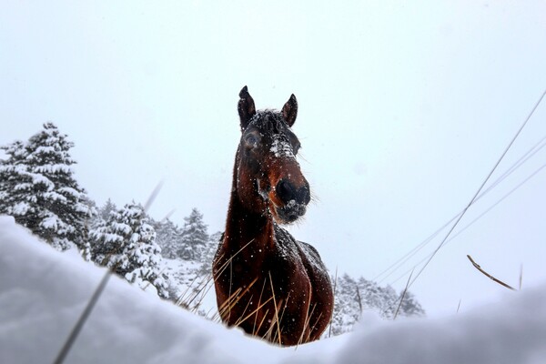 Παρ' όλα αυτά, η άγρια πανίδα της χώρας φαίνεται να μην πτοείται από την κακοκαιρία, όπως φαίνεται άλλωστε και από τις εικόνες αυτών των άγριων αλόγων, στα ορεινά της Σαμαρίνας.