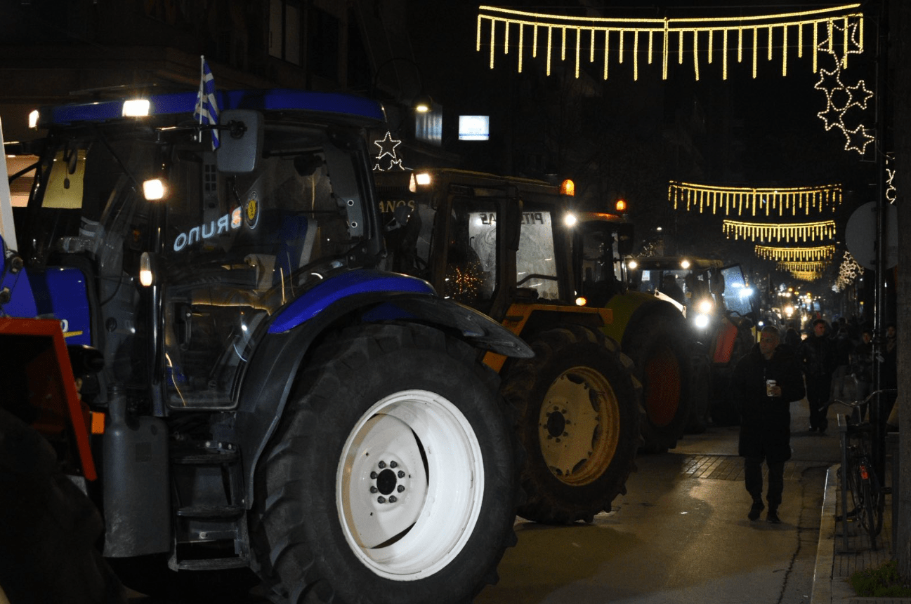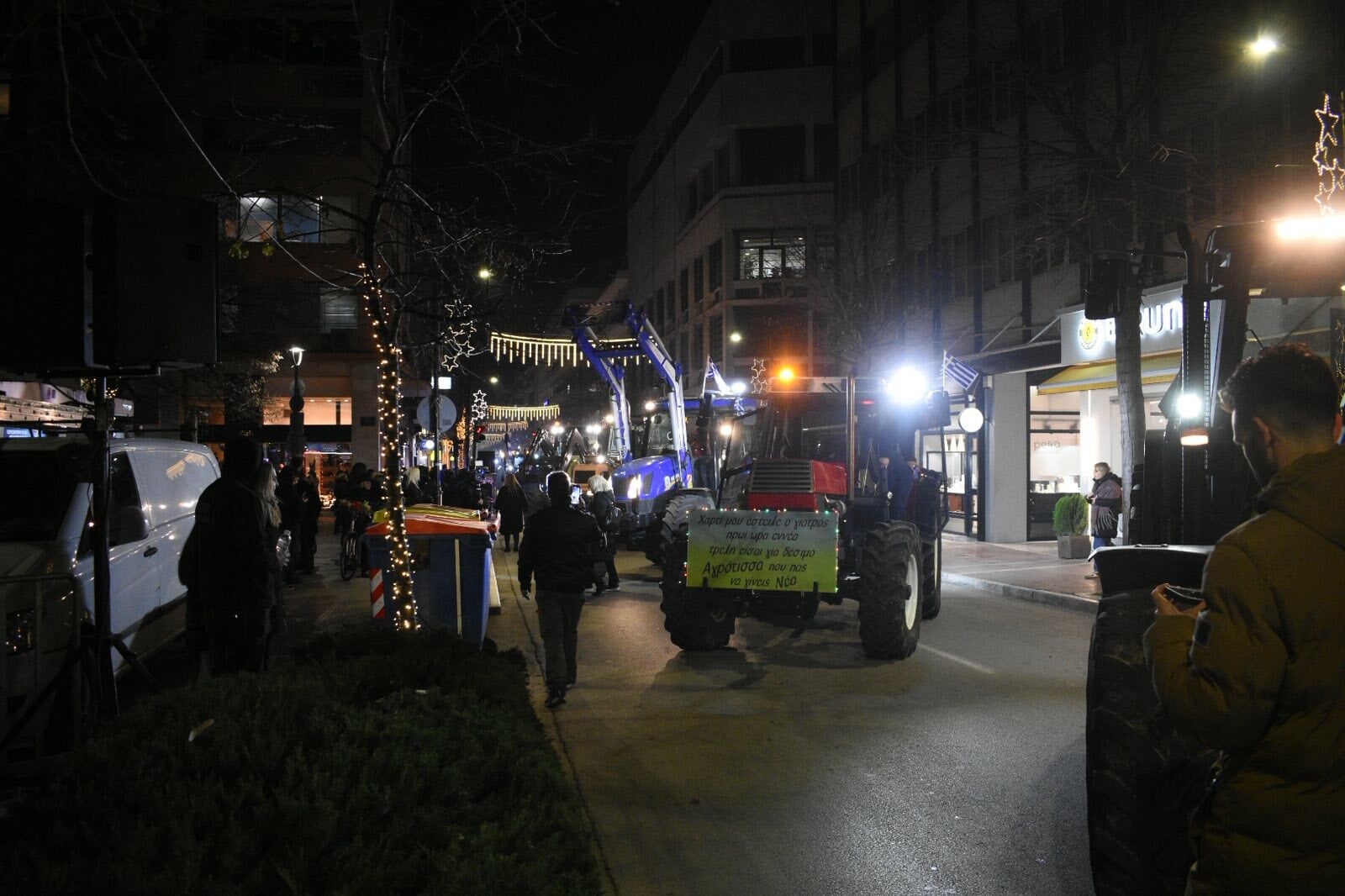 Σε νέα κινητοποίηση προχώρησαν το βράδυ της Δευτέρας οι αγρότες από το μπλόκο της Νίκαιας, συνεχίζοντας τις διαμαρτυρίες τους με πορεία τρακτέρ στους δρόμους του κέντρου της Λάρισας.