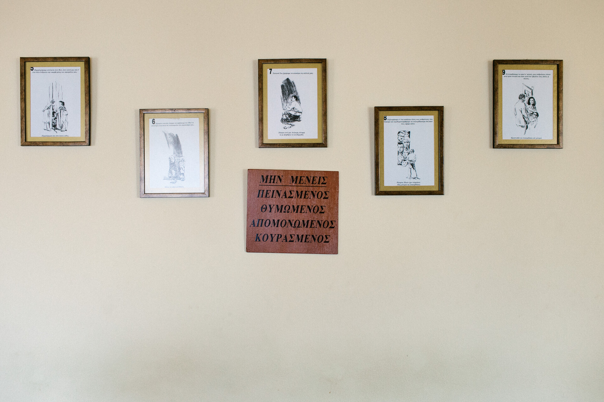 Πριν τους αποχαιρετήσω, σημειώνω διάφορες λέξεις που βλέπω γύρω μου στους τοίχους: «Παραδεχτήκαμε, πιστέψαμε, αποφασίσαμε, ταξινομήσαμε, προβήκαμε, επανορθώσαμε, επιδιώξαμε, συνεχίσαμε». Είναι οι λέξεις που αποτέλεσαν τα βήματα για μια νέα ζωή.