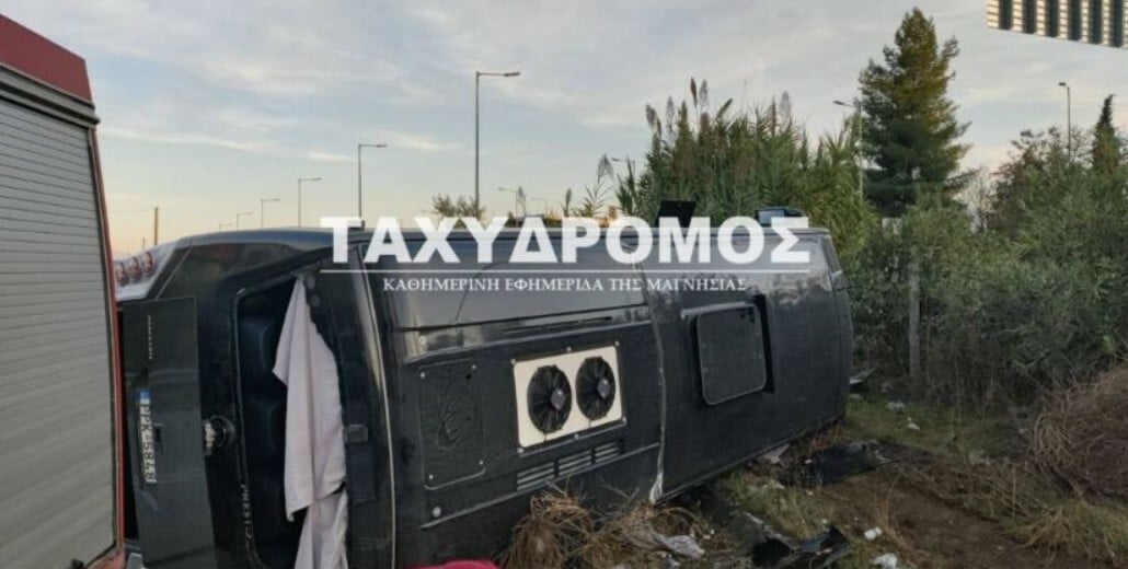 Ανατροπή λεωφορείου με 30 επιβάτες στη Μαγνησία