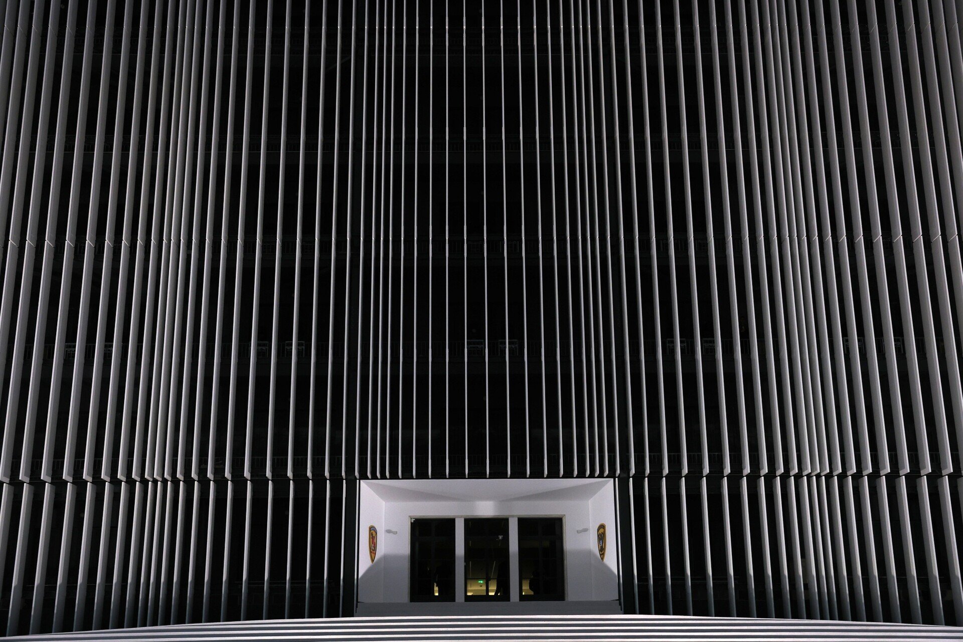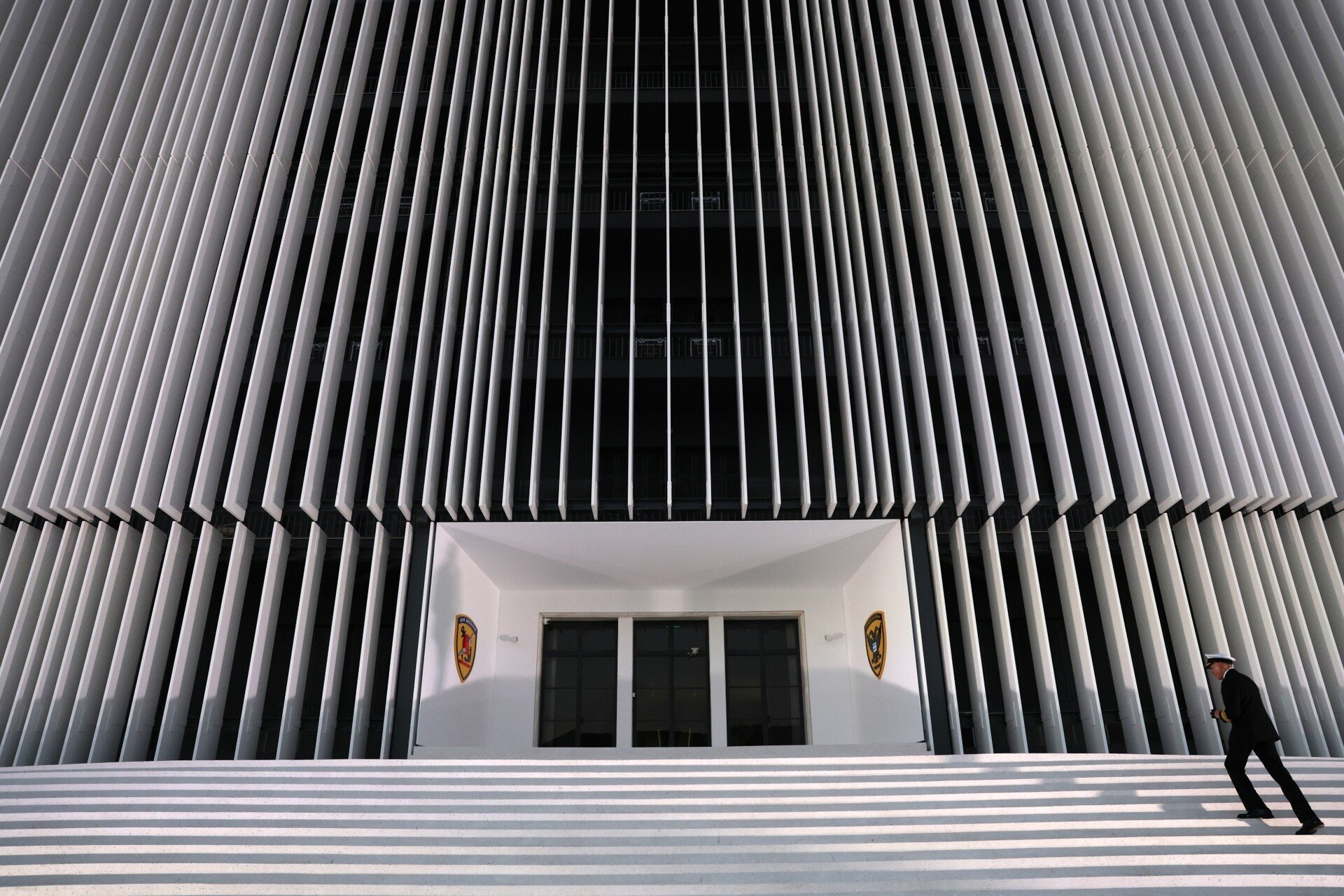 Όσον αφορά τη νότια όψη του κτιρίου, που έχει συνολικό μήκος μεγαλύτερο από 340 μέτρα, καλύφθηκε εξωτερικά στο σύνολό της με λευκές περσίδες αλουμινίου. Συγκεκριμένα, υπάρχουν 730 κάθετες σειρές περσίδων, όπου η κάθε μία έχει ύψος 30,5 μέτρα.