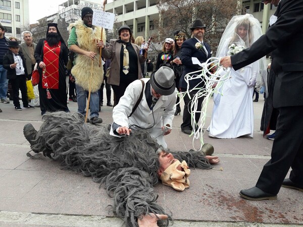 Σε μια πλευρά της πόλης, από νωρίς το πρωί στήθηκε ένας παραδοσιακός γάμος με έντονο αποκριάτικο και χιουμοριστικό στοιχείο. «Στολίσαμε τη νύφη, το μυστήριο έγινε και στήσαμε ένα μεγάλο γλέντι με χορούς και μουσικές στο κέντρο της Λάρισας», είπε στο ΑΠΕ-ΜΠΕ ο πρόεδρος του Πολιτιστικού Συλλόγου Χορίαμβος, Νίκος Σαμαρίνας, περιγράφοντας το αποκριάτικο δρώμενο που υλοποίησε το μπουλούκι του συλλόγου.