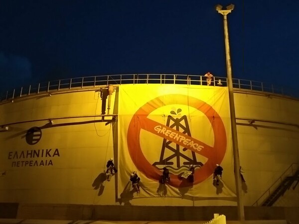 Λίγο μετά τις 6π.μ, ακτιβιστές της οργάνωσης προσδέθηκαν στην κύρια πύλη, εμποδίζοντας την είσοδο οχημάτων στις εγκαταστάσεις. Όπως τονίζει η Greenpeace σε δελτίο τύπου, οι εξορύξεις υδρογονανθράκων και φυσικού αερίου που σχεδιάζουν τα ΕΛΠΕ στην Ελλάδα «συντελούν στην κλιματική κρίση και απειλούν το δικαίωμά μας σε ένα υγιές, καθαρό περιβάλλον και στην ίδια μας τη ζωή».